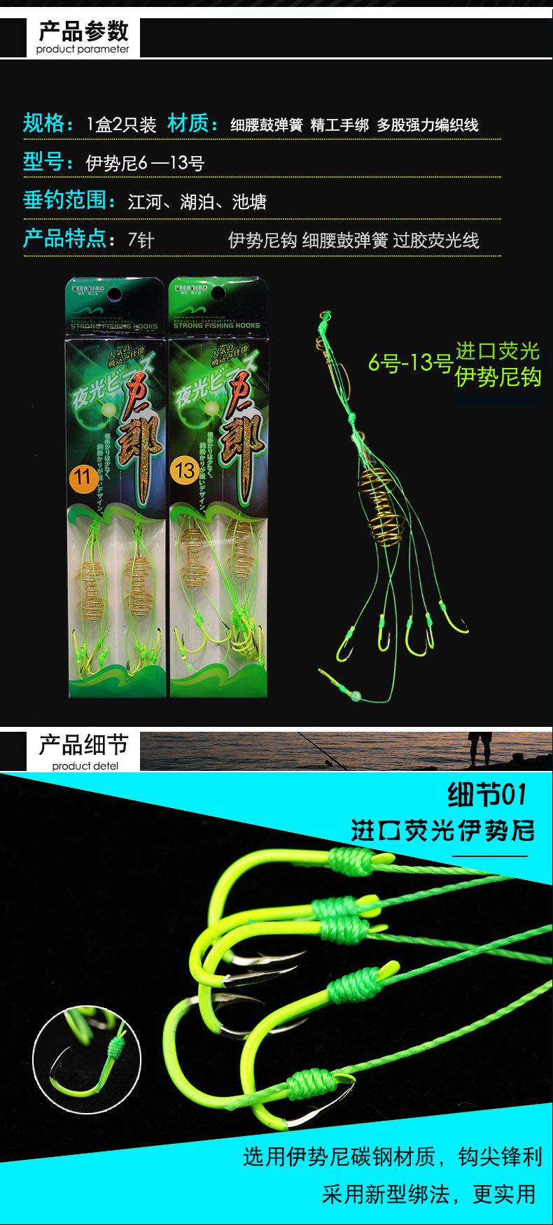 Al hablar del anzuelo de pesca, nos referimos a la pesca tradicional, con caña larga y línea corta. El anzuelo de pesca generalmente se compone de una línea principal atada directamente a la ranura del anzuelo con el color base, y el flotador utiliza principalmente flotadores de siete estrellas y flotadores fijos. Al estar integrados el anzuelo y el plomo, cuando el pez muerde el anzuelo, la señal de pesca se envía principalmente al flotador. Solo cuando la carpa herbívora, la carpa negra, el besugo y otros peces grandes muerden el anzuelo, el flotador mostrará un flotador negro. El anzuelo de pesca es muy común y es la herramienta principal para la pesca salvaje. Una caña de mano con un conjunto de pesca tradicional permite la pesca salvaje en entornos naturales complejos. Además, ofrece mayor flexibilidad de maniobrabilidad. Las ventajas de pescar en estanques de hierba son incomparables con la pesca con plomo suspendido. Además, el anzuelo de pesca casi siempre tiene púas. Una vez enganchado, el pez tiene dificultades para soltarse del anzuelo debido al efecto de las púas, lo cual es muy popular entre pescadores de mayor edad y principiantes.