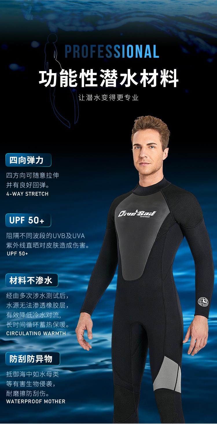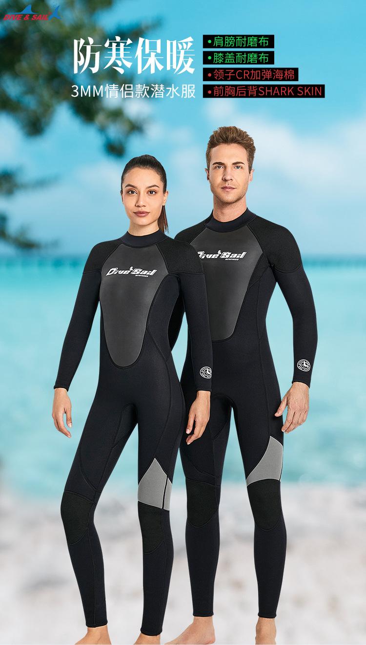 Traje de buceo DIVE & SAIL de 3 mm, de una pieza, de manga larga, cálido, para buceo, esnórquel, surf y traje de baño de invierno.