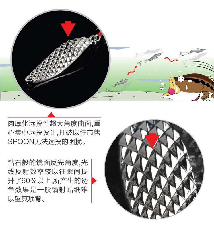 Características: Diseño engrosado, de largo alcance y gran angular curvo, con ángulo de reflexión tipo espejo diamante en la parte posterior, y plumas