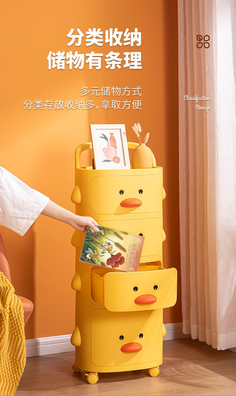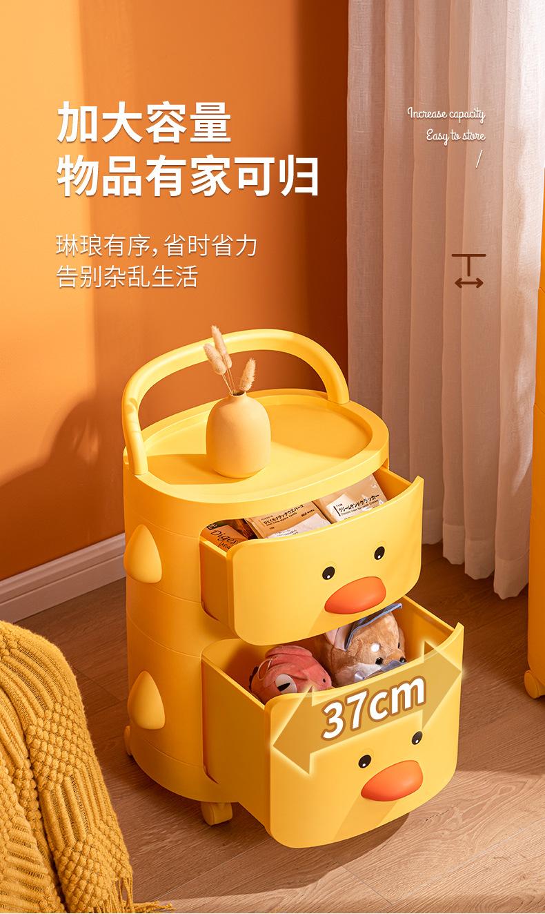 Jiaxiao lindo carrito de almacenamiento de patito amarillo, casillero para snacks, multicapa, estante para guardar juguetes de noche para dormitorio infantil