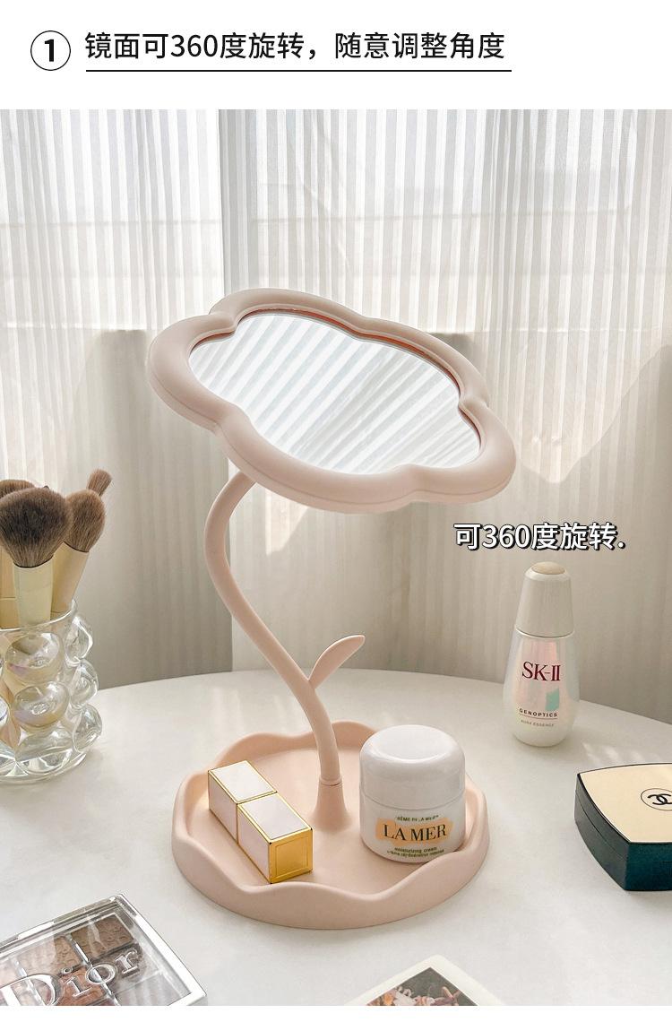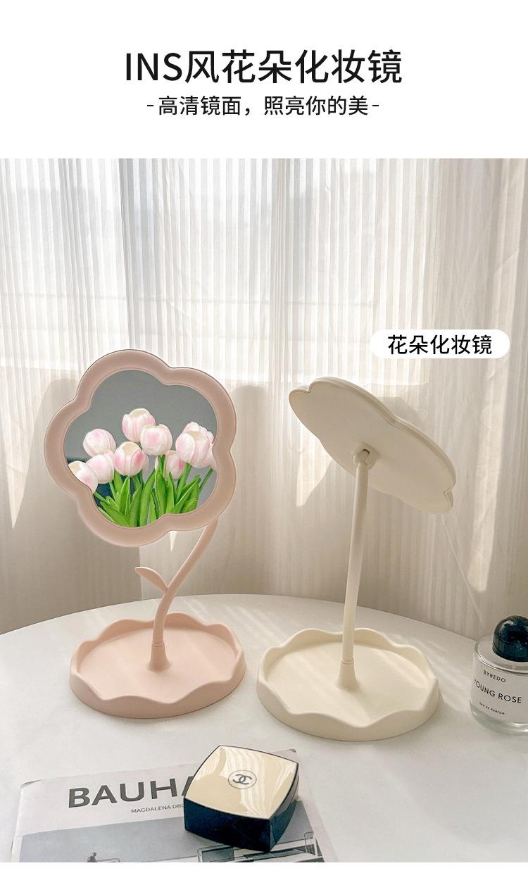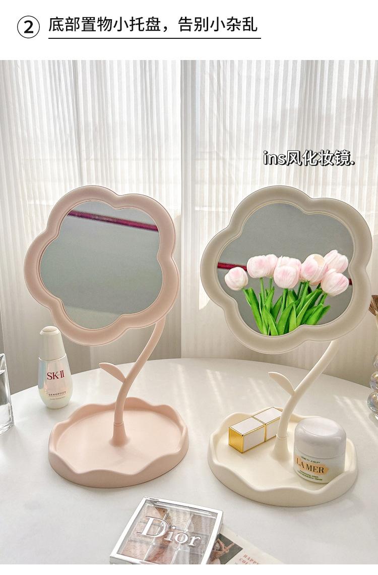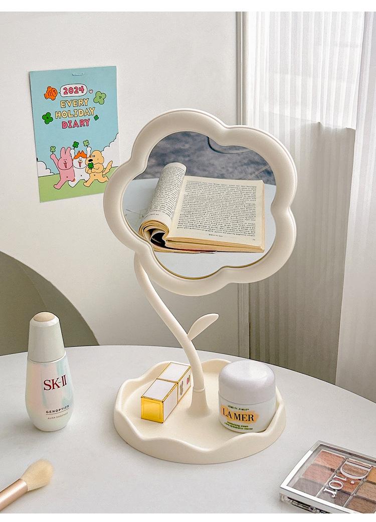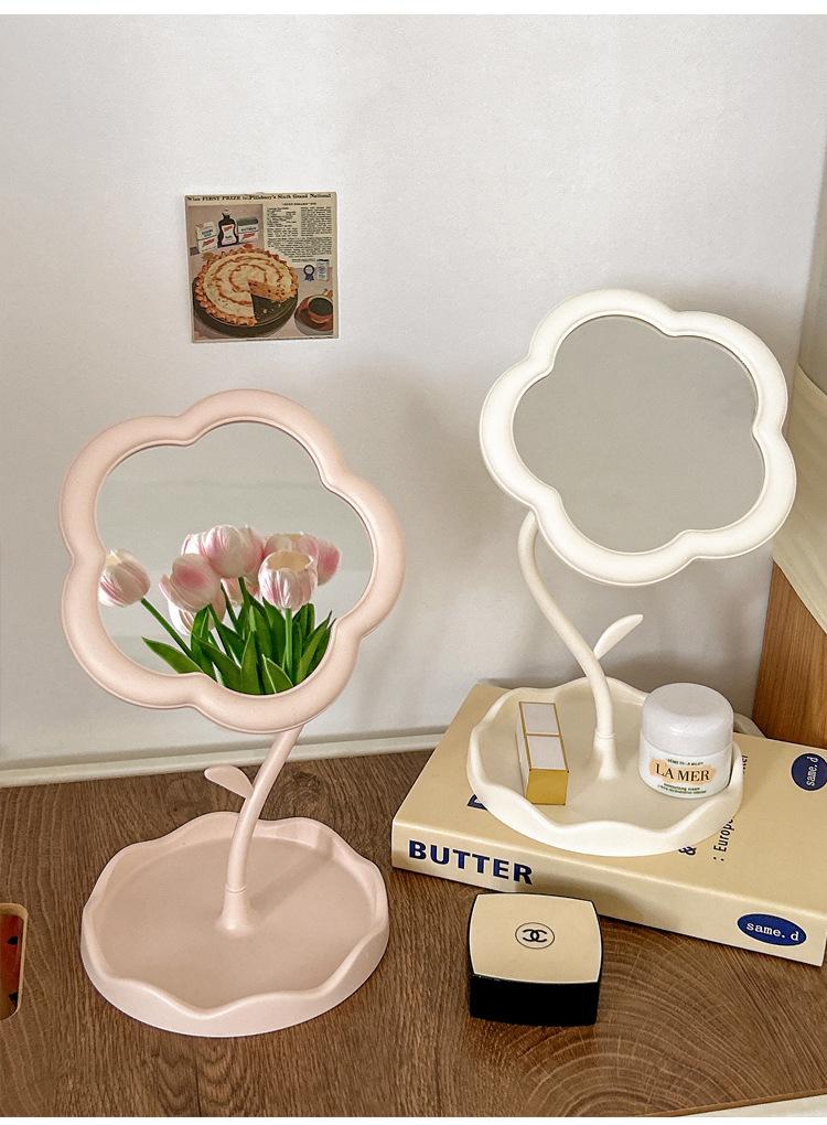 Espejo Espejo de Maquillaje Escritorio Escritorio Estudiante Dormitorio Ins Crema Flor Sentido Popular Espejo de Maquillaje de Oficina