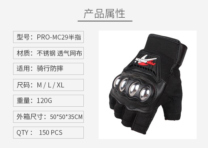Guantes de motocicleta PRO ciclista bicicleta todoterreno anticaída antideslizantes acero inoxidable medio dedo transpirables equipo de conducción