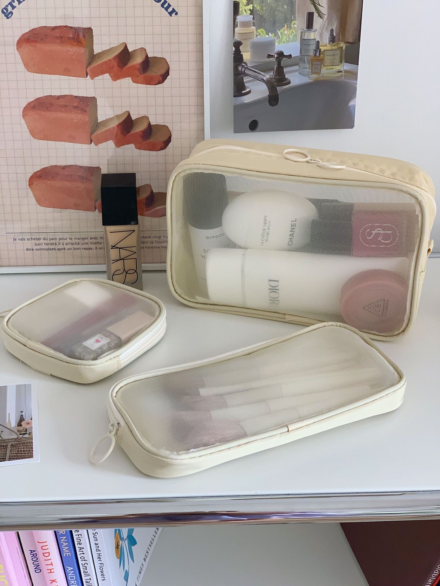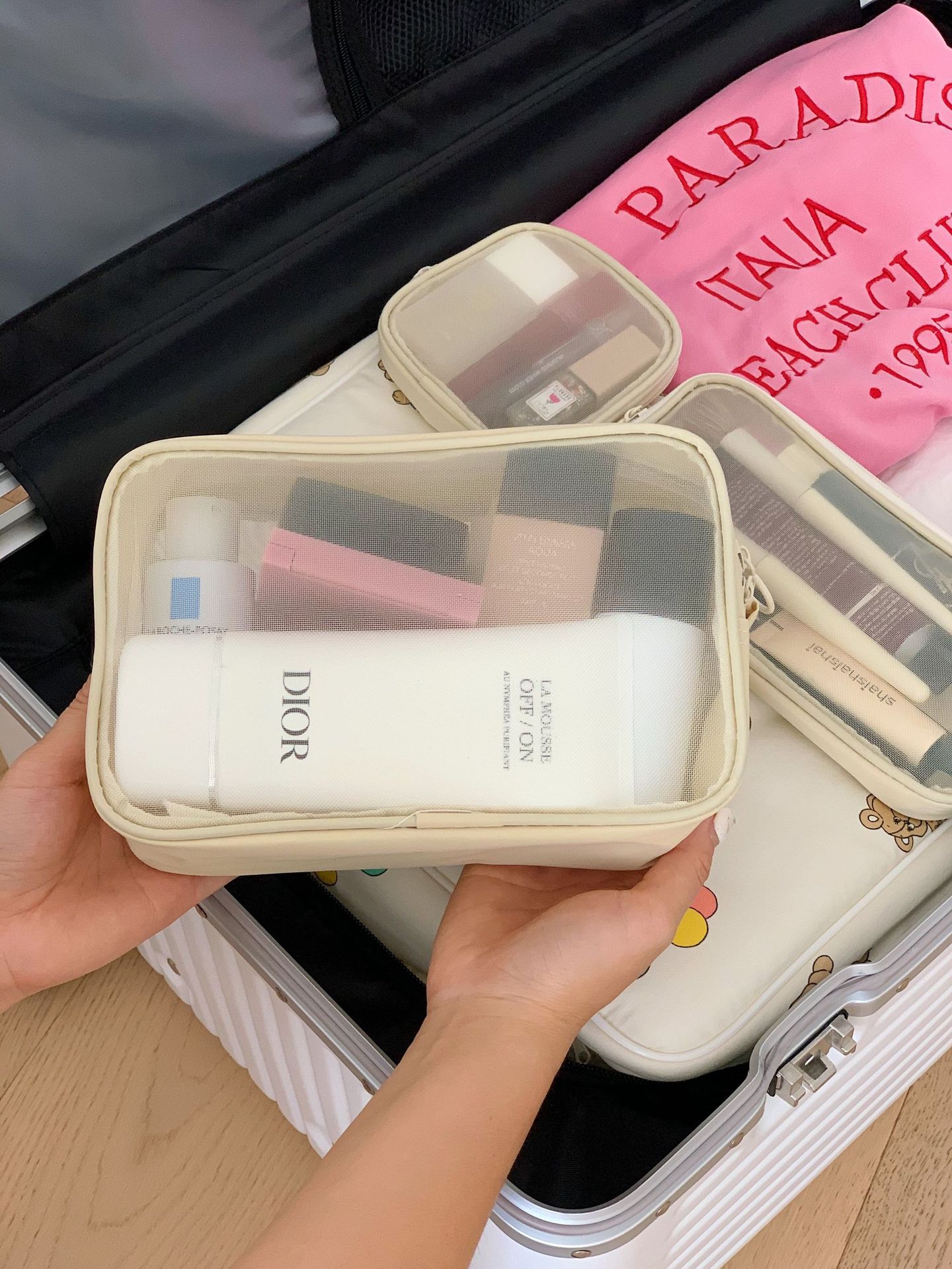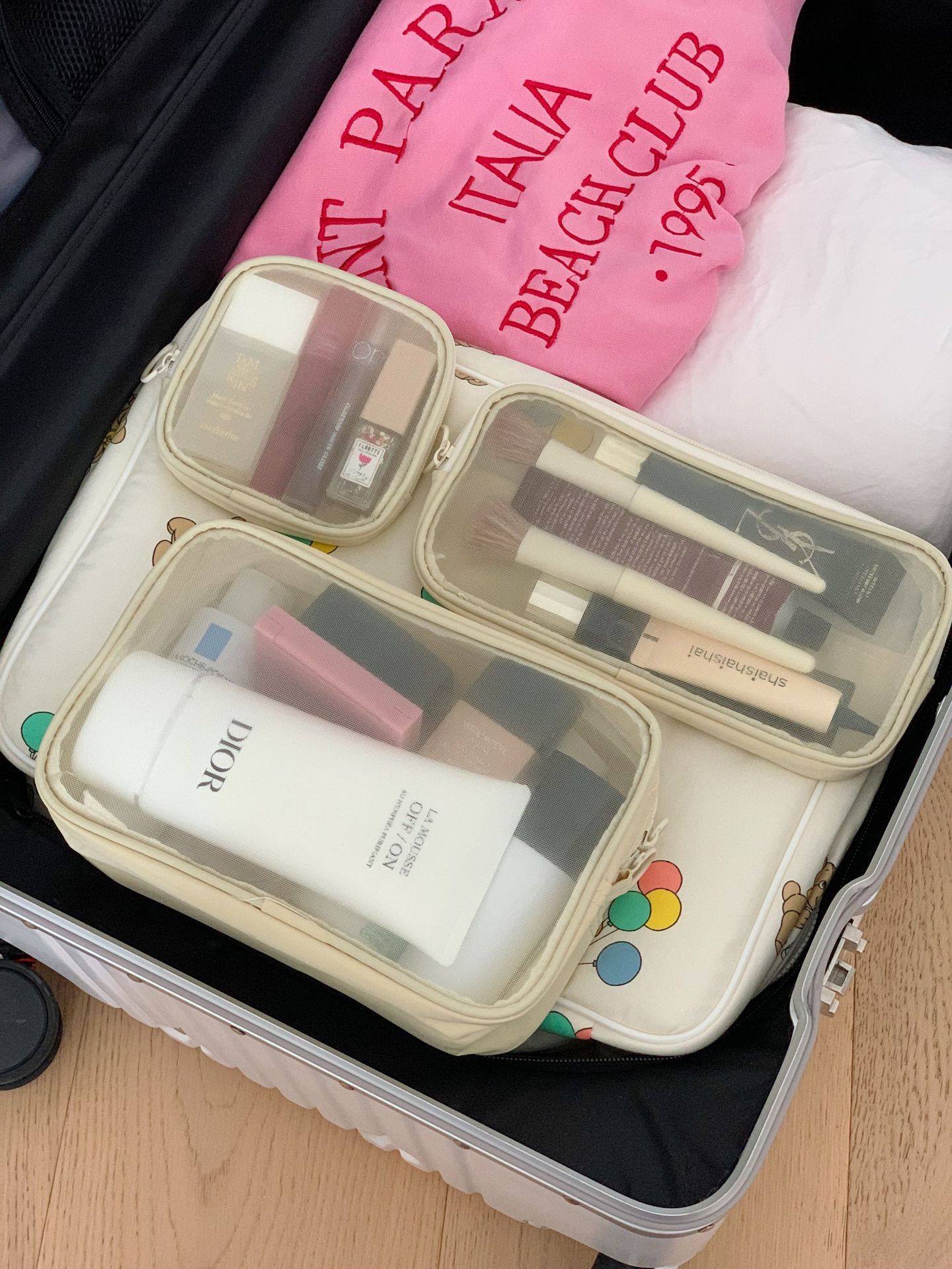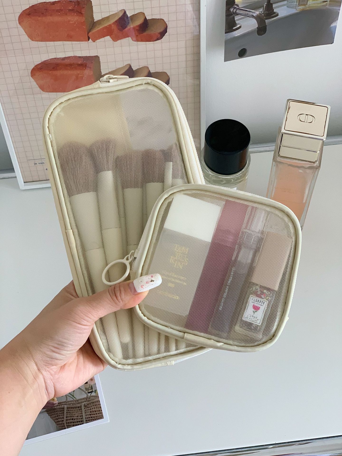 Bolsa de almacenamiento para cosméticos, bolsa de viaje transparente y portátil para brochas de maquillaje, bolsa de almacenamiento para cosméticos de gran capacidad
