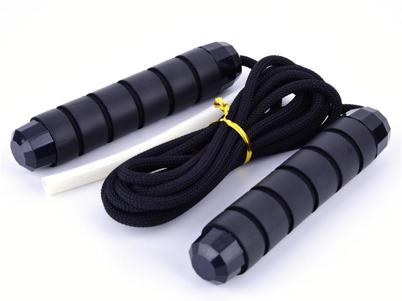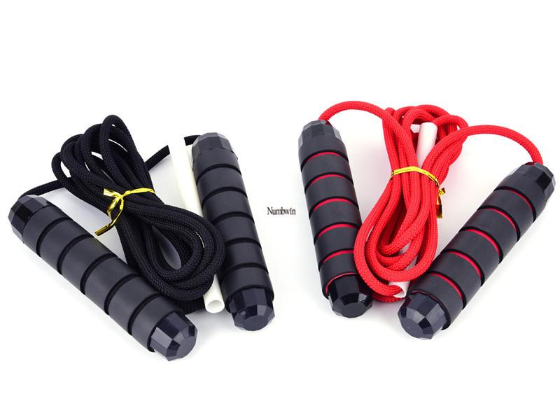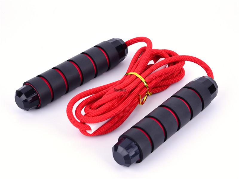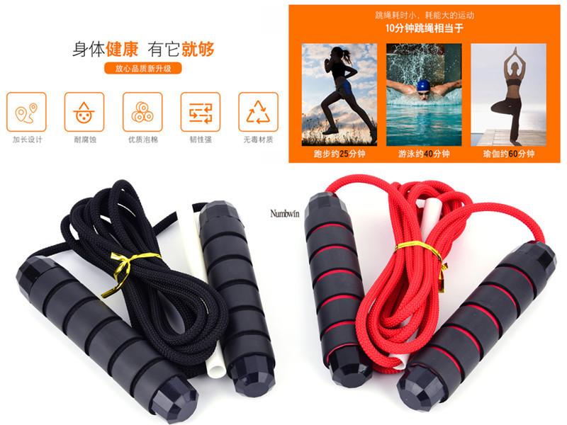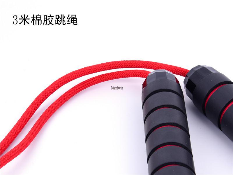 La cuerda para saltar de algodón-goma de 3 metros está disponible en negro y rojo, empaquetada en una sola bolsa opp, pesa 180g y tiene una longitud de mango de 15.5cm. Se configura un tubo de goma blanca en el medio de la cuerda de algodón-goma para proteger la cuerda del desgaste.