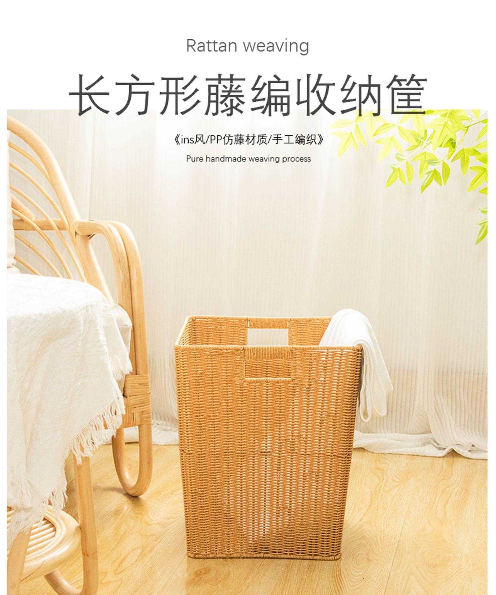 Cesto de lavandería tipo ratán cesto de almacenamiento cuadrado para juguetes de sala de estar cesto de lavandería para el hogar y el baño cesto de almacenamiento cuadrado para artículos diversos estilo ins
