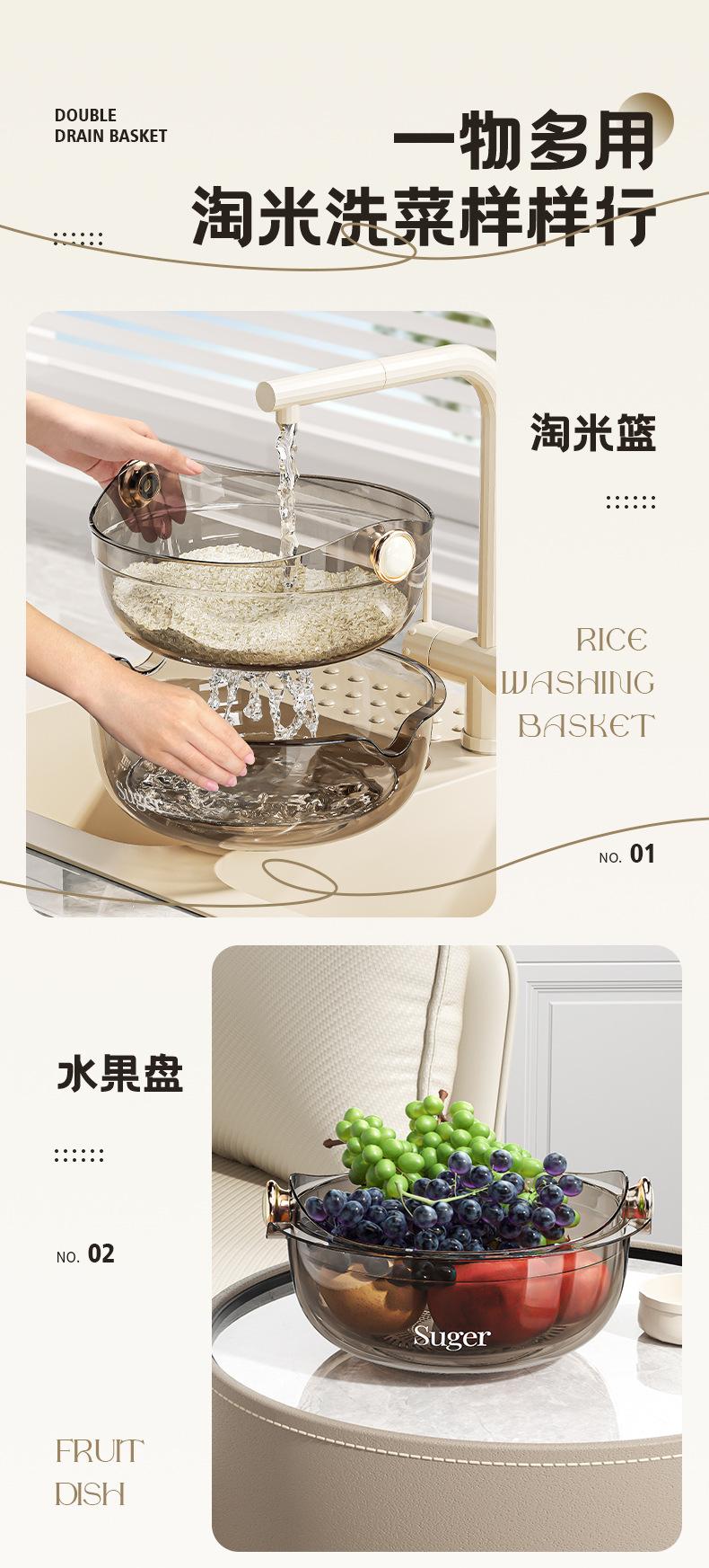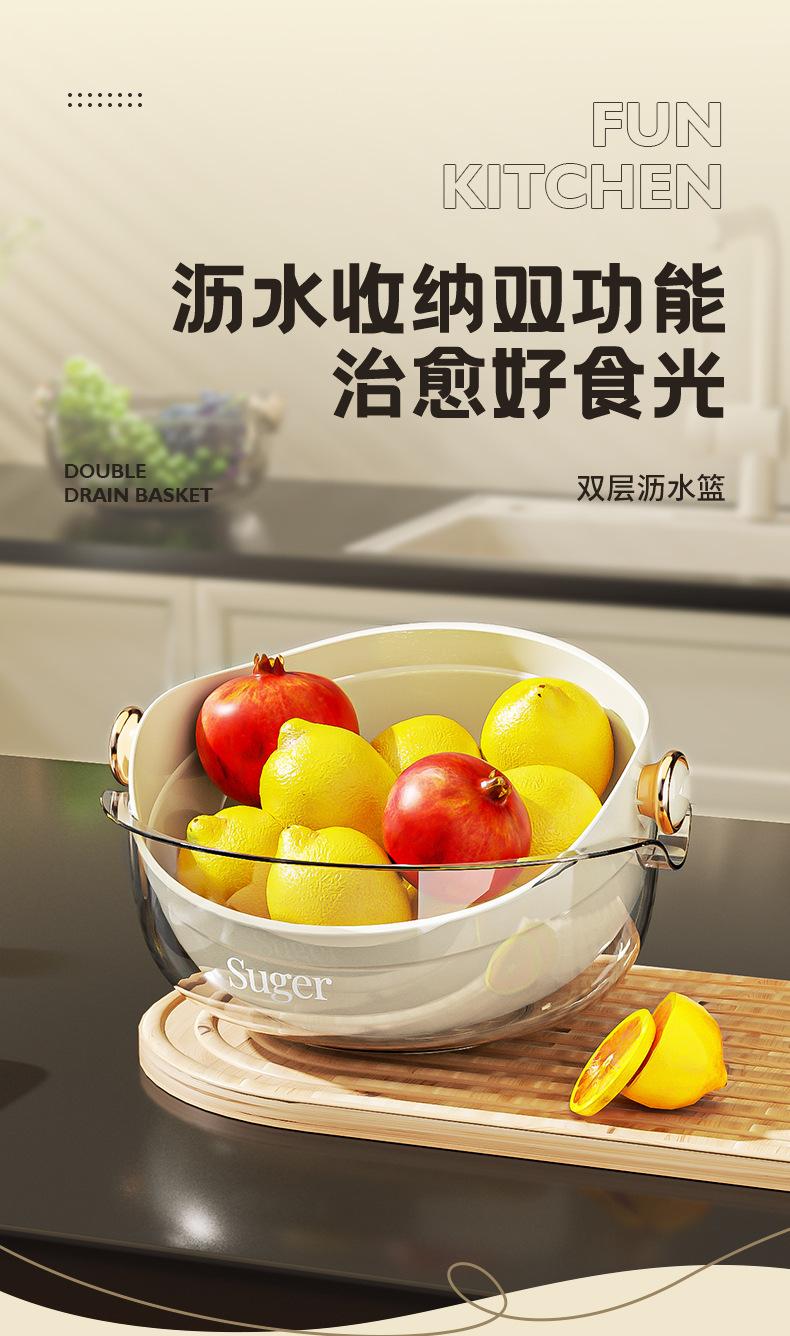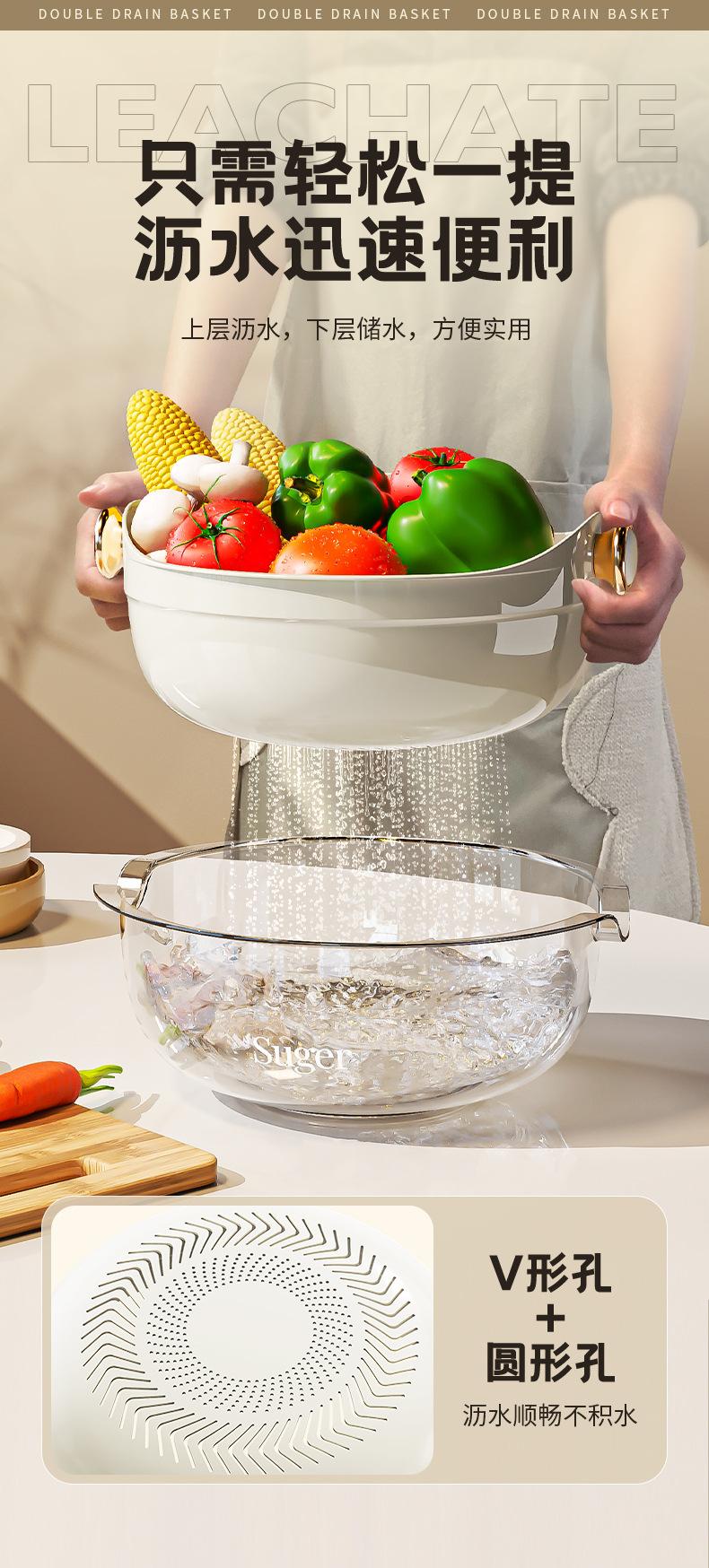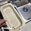 Cesta de Drenaje Hueca para Fregadero de Cocina, Cesta para Lavar Verduras, Lavabo de Plástico de Doble Capa de Gran Capacidad, Cesta de Drenaje Plegable