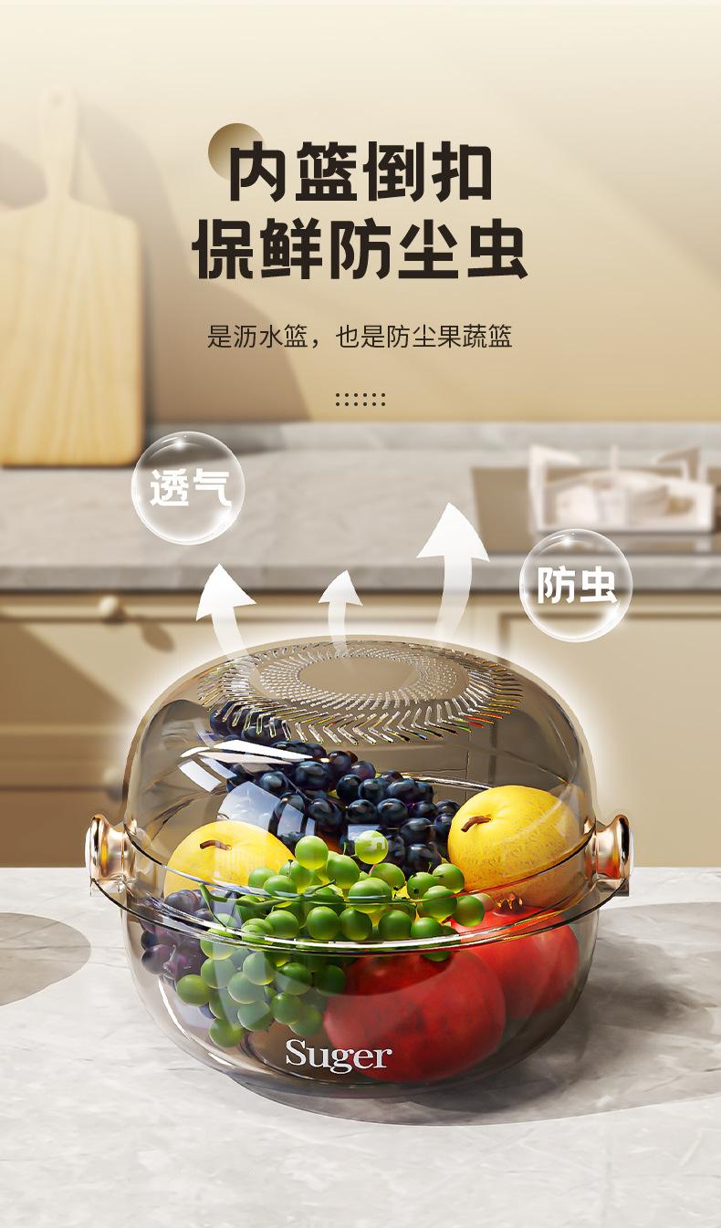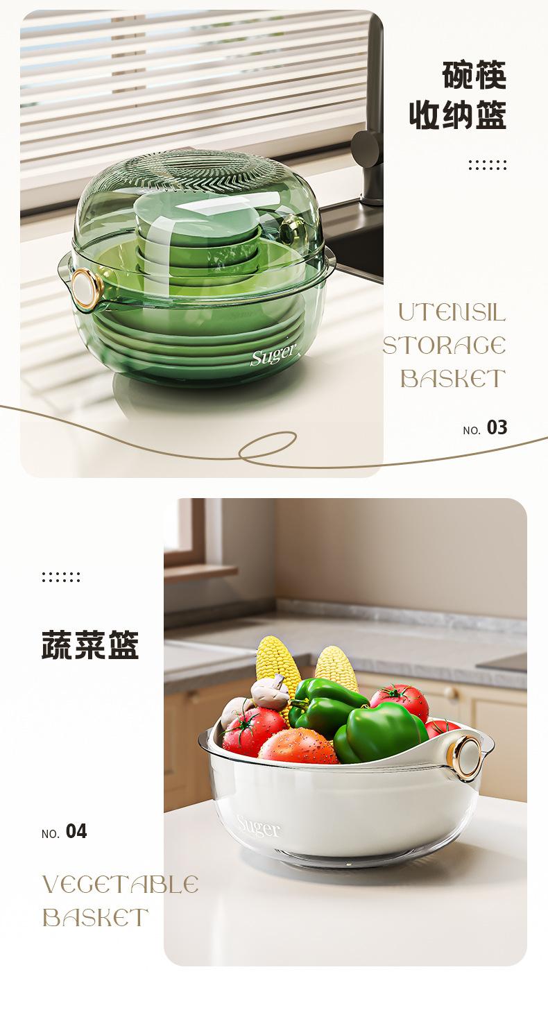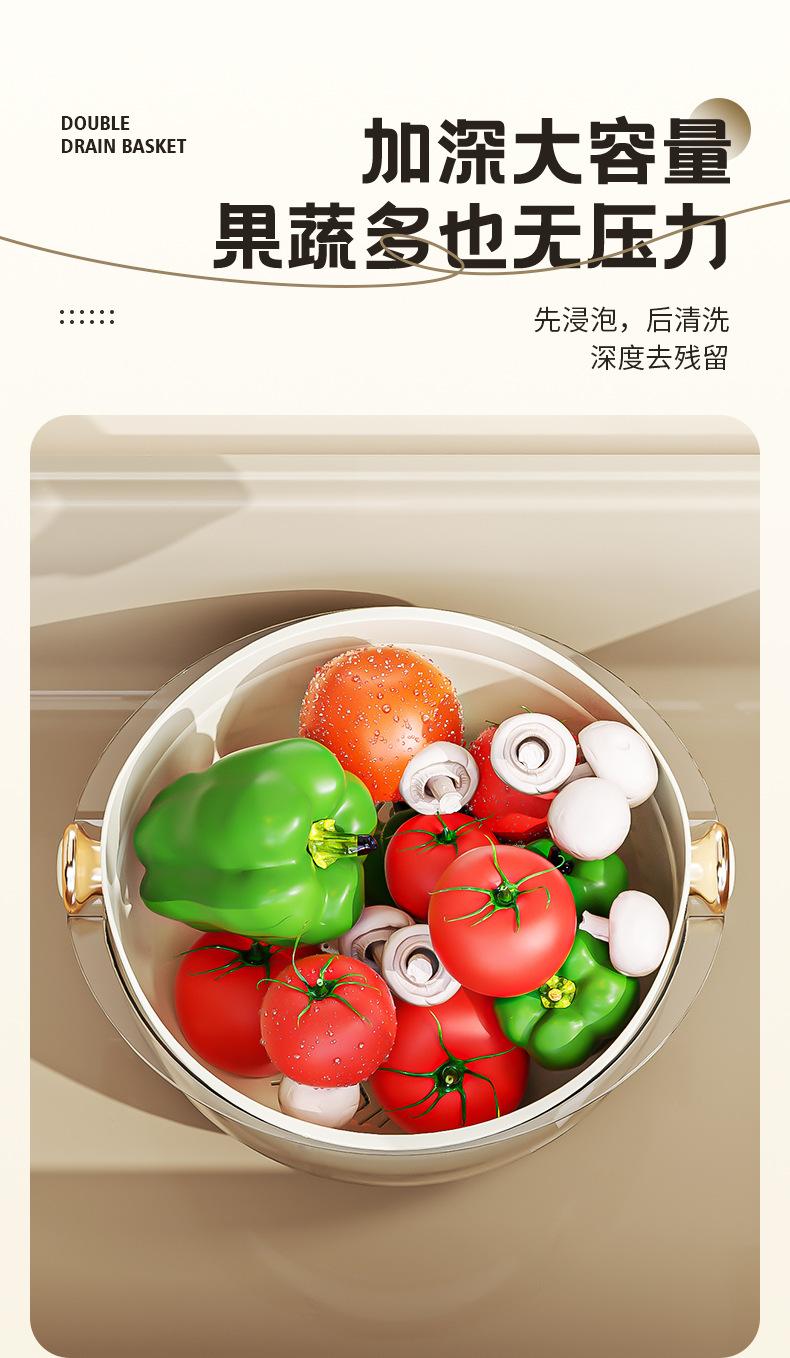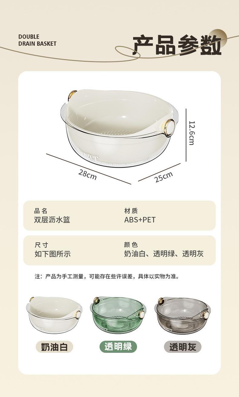 Cesta de Drenaje Hueca para Fregadero de Cocina, Cesta para Lavar Verduras, Lavabo de Plástico de Doble Capa de Gran Capacidad, Cesta de Drenaje Plegable