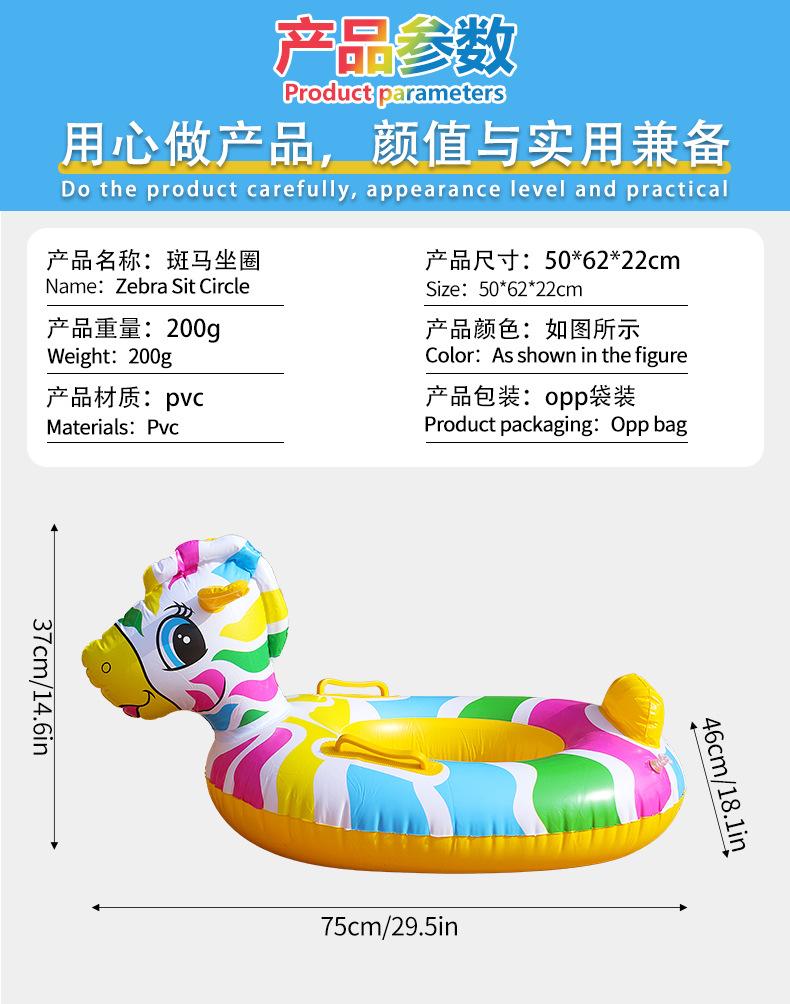Cebra inflable al por mayor con asa anillo de natación asiento inflable para niños anillo de natación animal lindo cebra barco para exteriores
