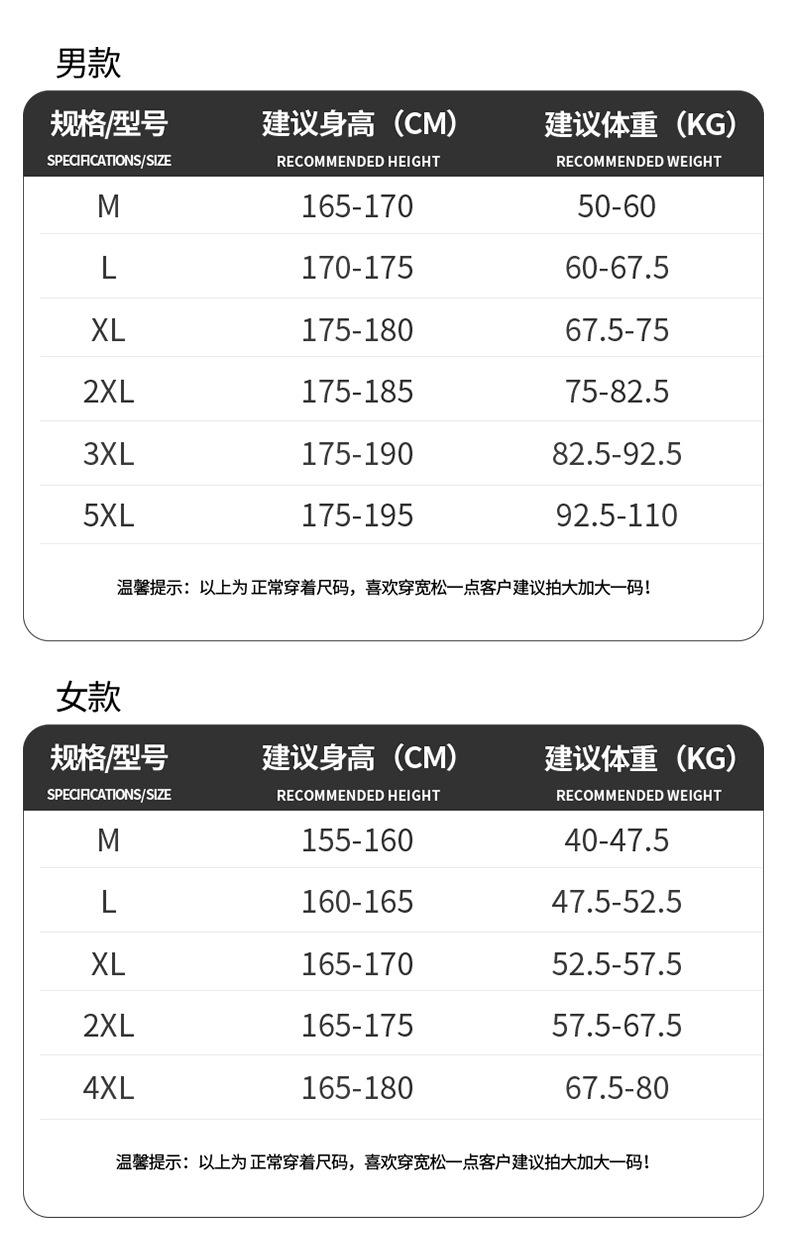 M, L, XL, XXL, XXXL, 4XL, 5XL