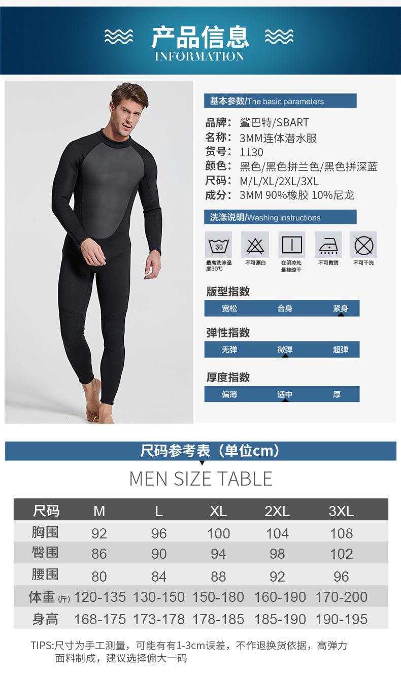 Traje de Neopreno Shark Bart de una pieza 3mm Traje Húmedo Cálido y a Prueba de Frío Traje de Snorkel Traje de Baño de Invierno Traje de Neopreno Traje de Surf para Hombre