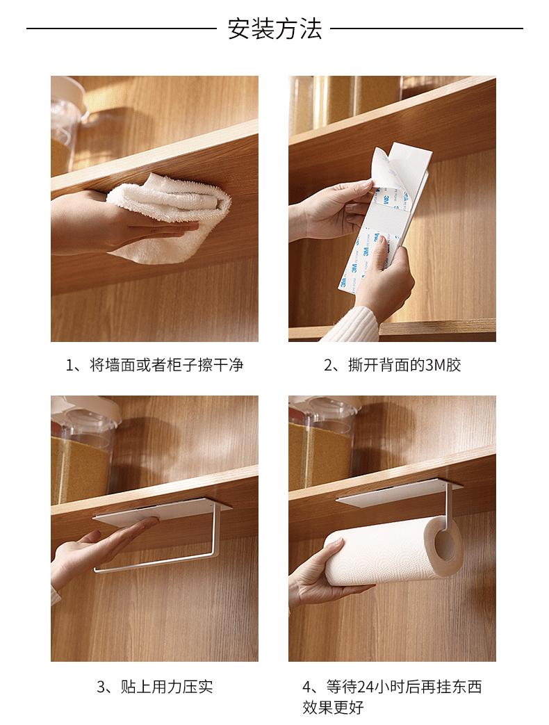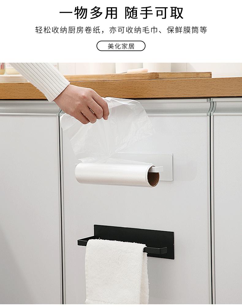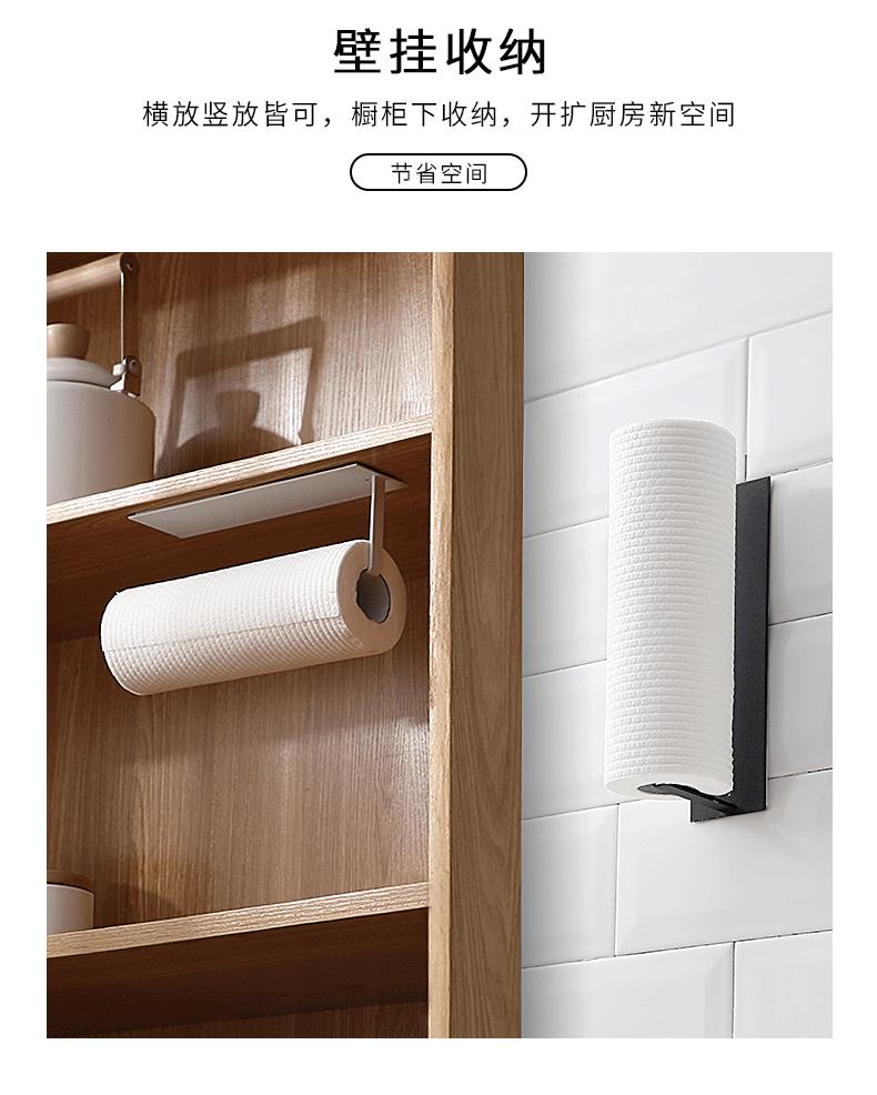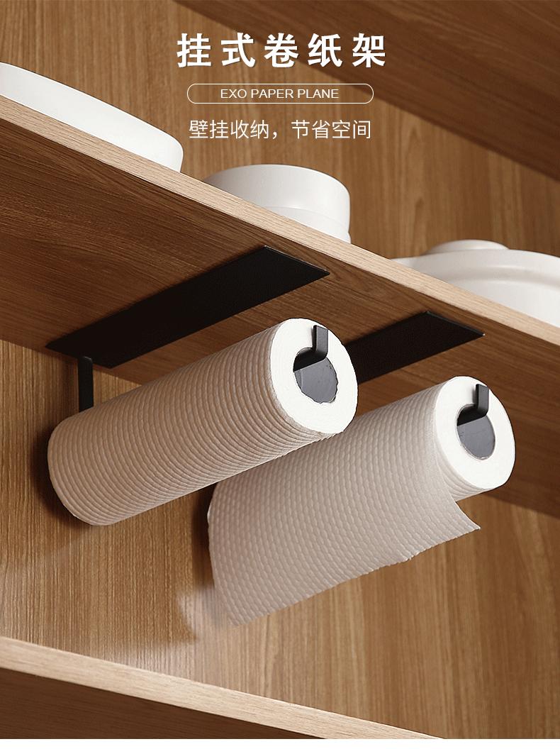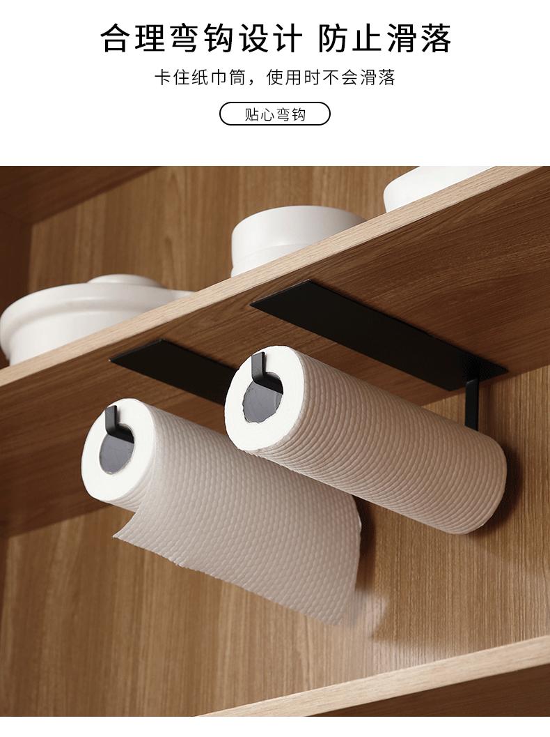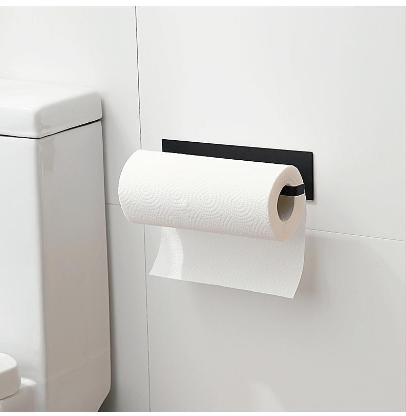 Estante para rollos de papel de cocina de hierro sin perforaciones, estante para pañuelos, estante de almacenamiento de papel de cocina adhesivo para colgar en la pared