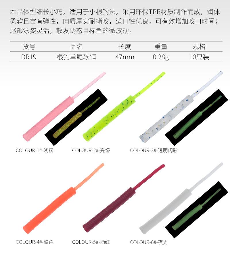 Nuevas 10 bolsas de cebo blando de cola simple para pesca de raíz, cebo blando pequeño de cola de aguja, cebo falso Luya, cebo blando para insectos, perca volteada hacia arriba, venta al por mayor