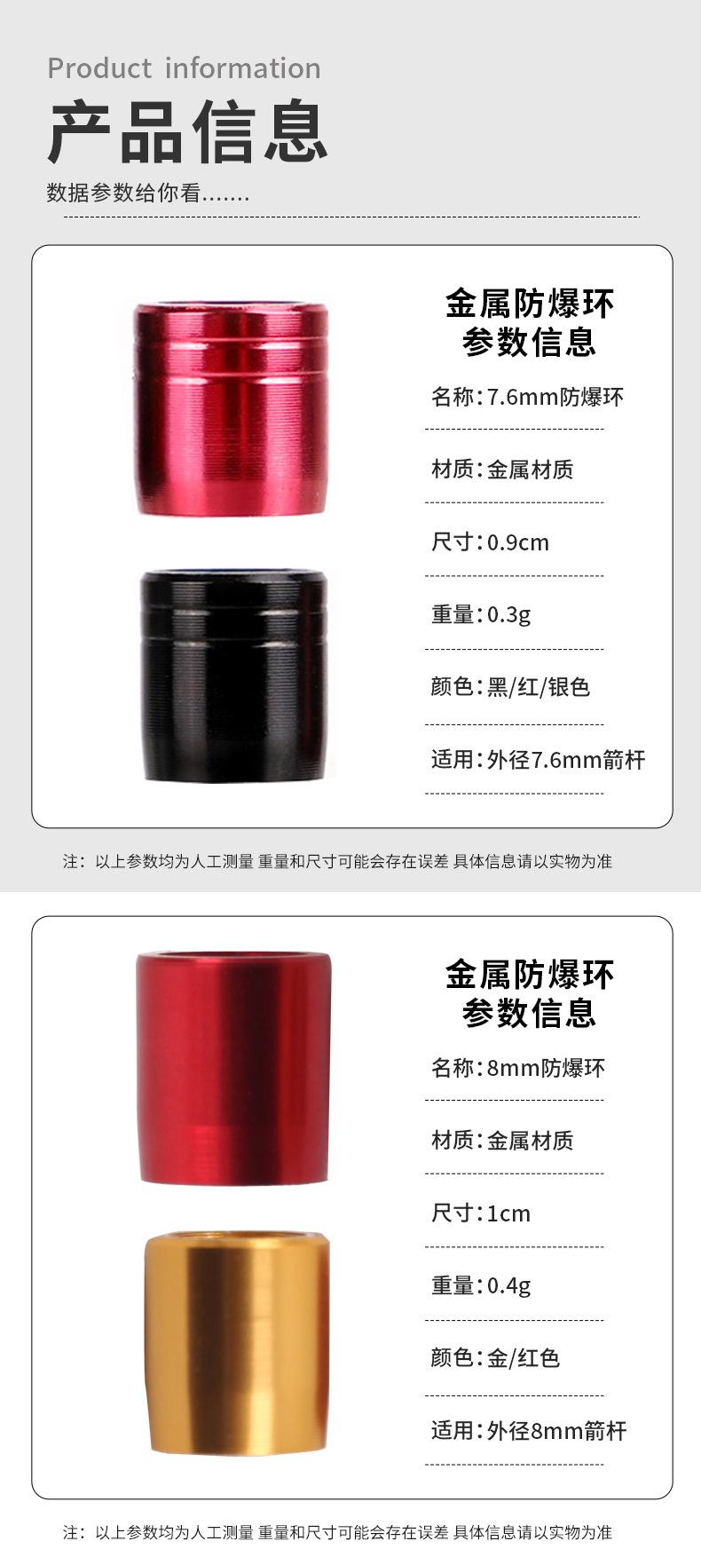 Hay dos modelos de anillo antideflagrante para chaqueta de 7.6MM (los colores son negro, rojo y plateado)