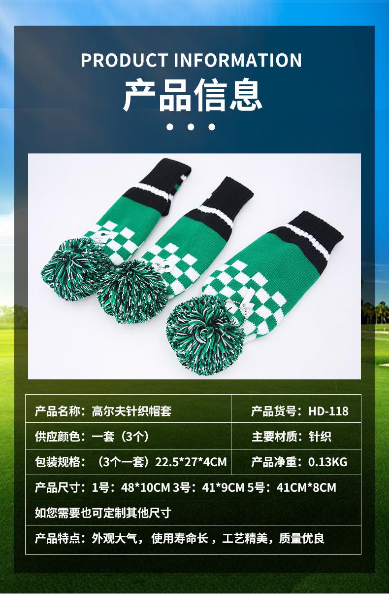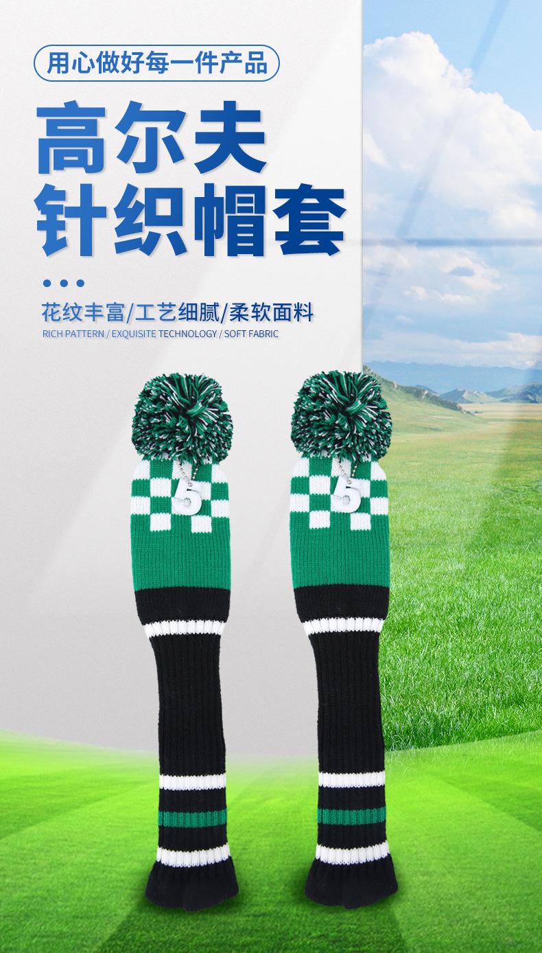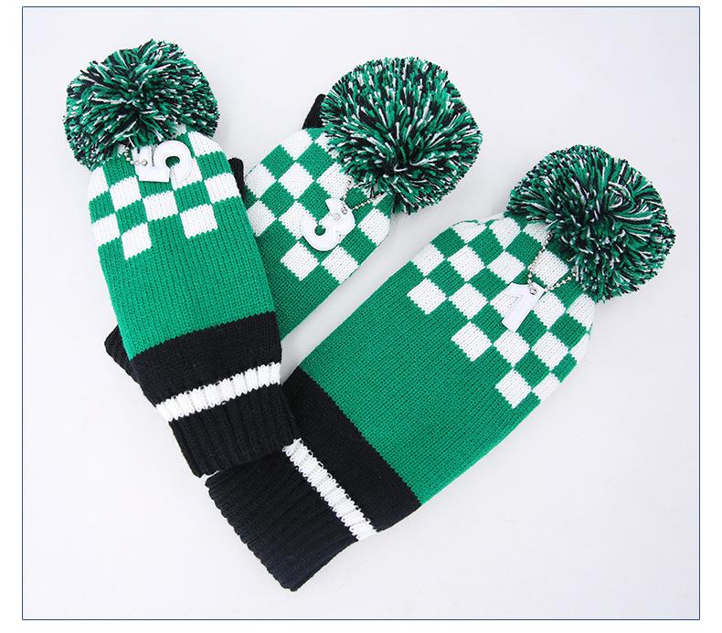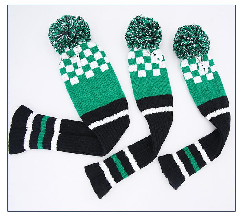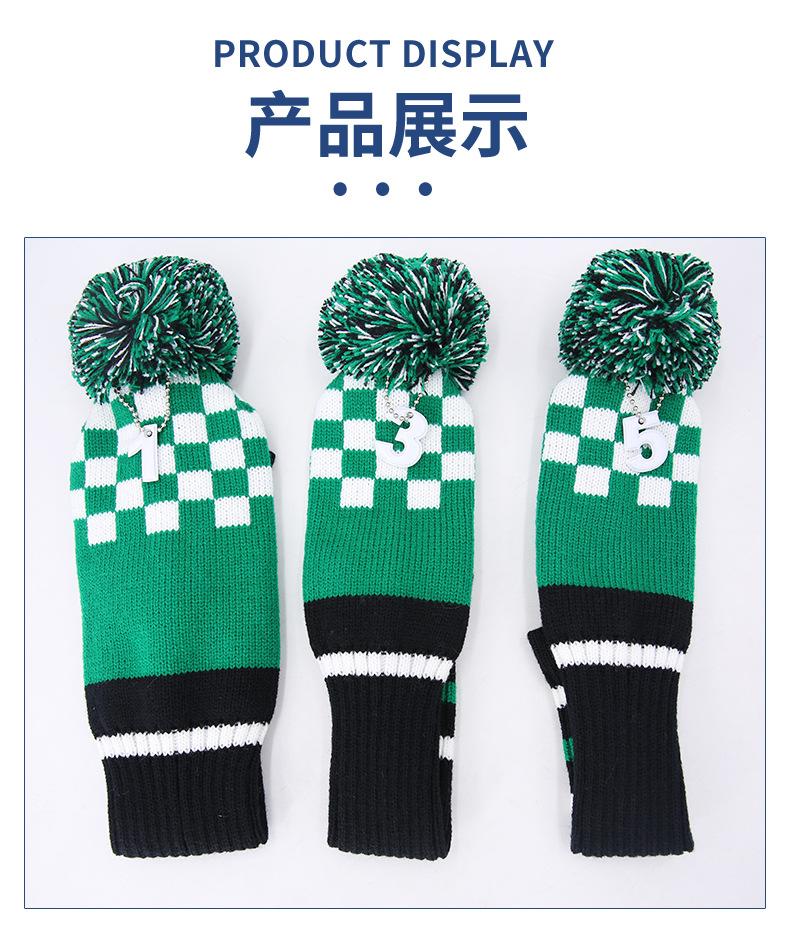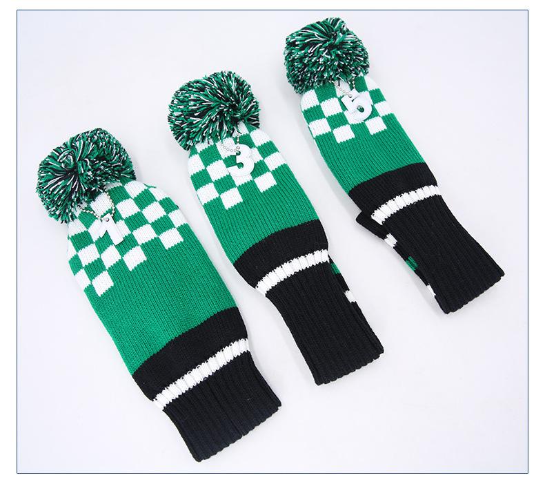 Cubierta de punto para palo de golf transfronteriza No. 1 No. 3 No. 5 funda protectora de poste de madera cubierta de felpa verde cubierta de tapa venta al por mayor de fábrica