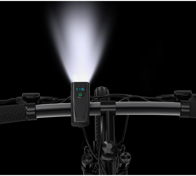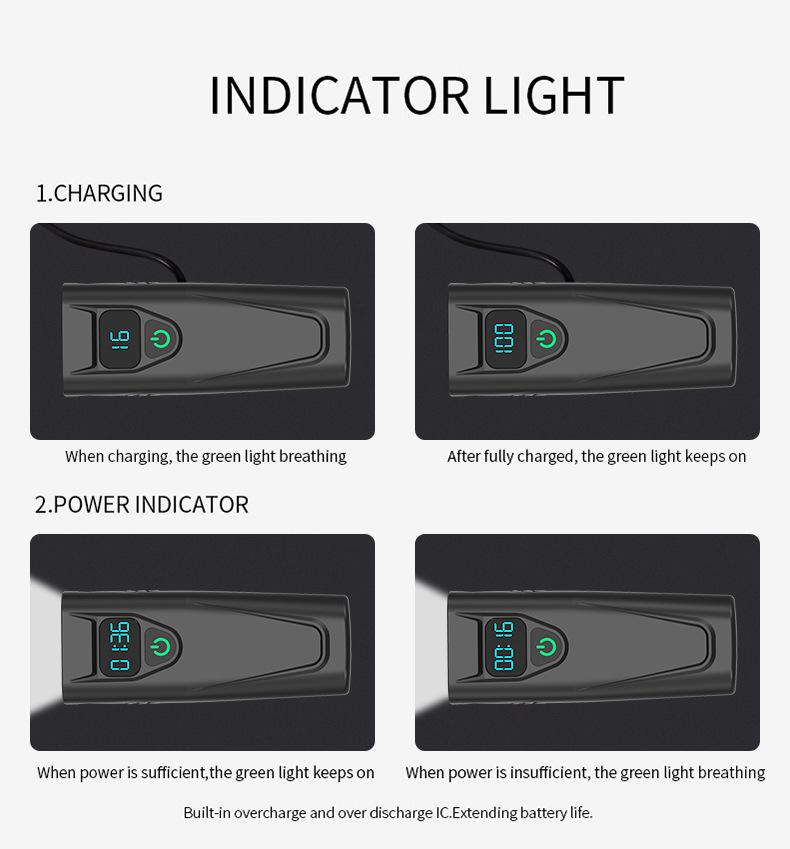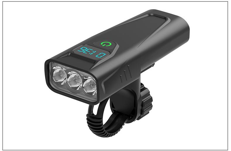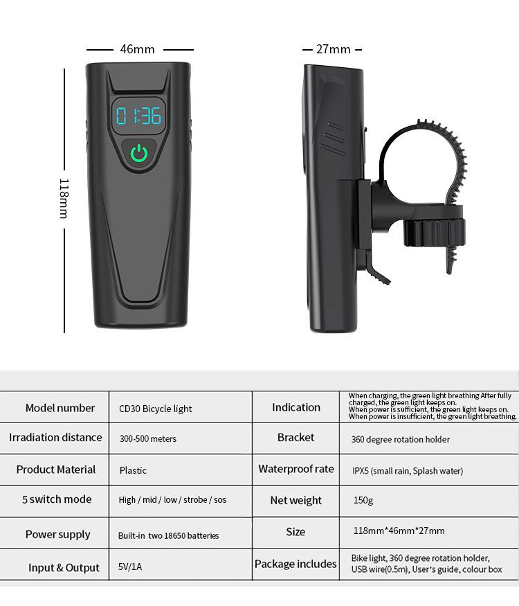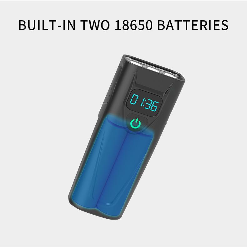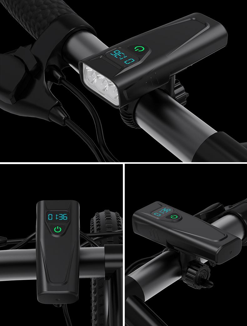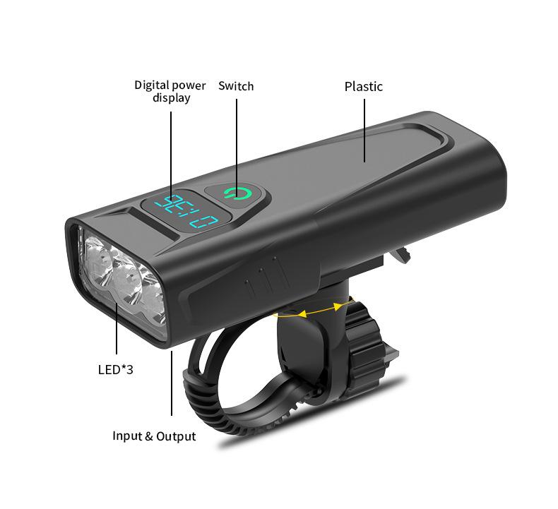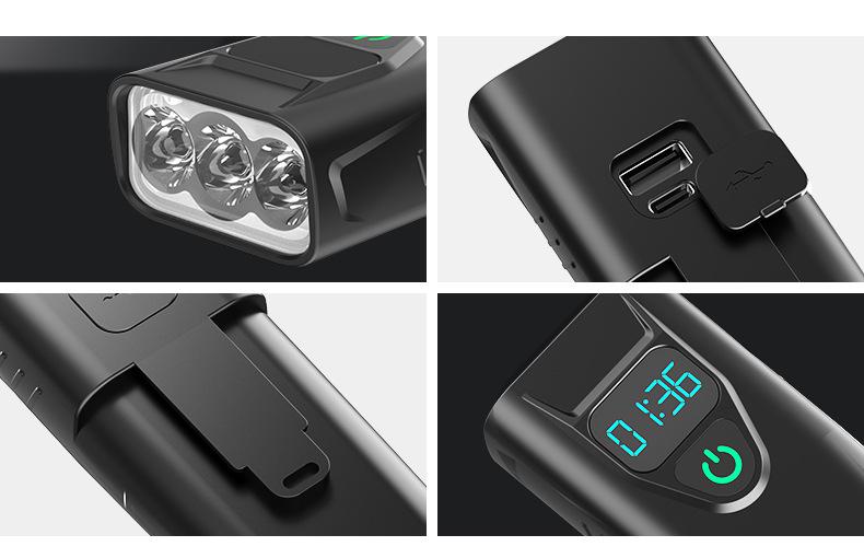 Faro, linterna, pantalla digital en tiempo real función tres en uno, celdas duales 18650 incorporadas (5200mAh), soporte giratorio de 360 grados, carcasa de plástico ligera, chip de sobrecarga y sobredescarga incorporado, se puede cargar por USB, con indicador de energía para carga y descarga, tres niveles ajustables.