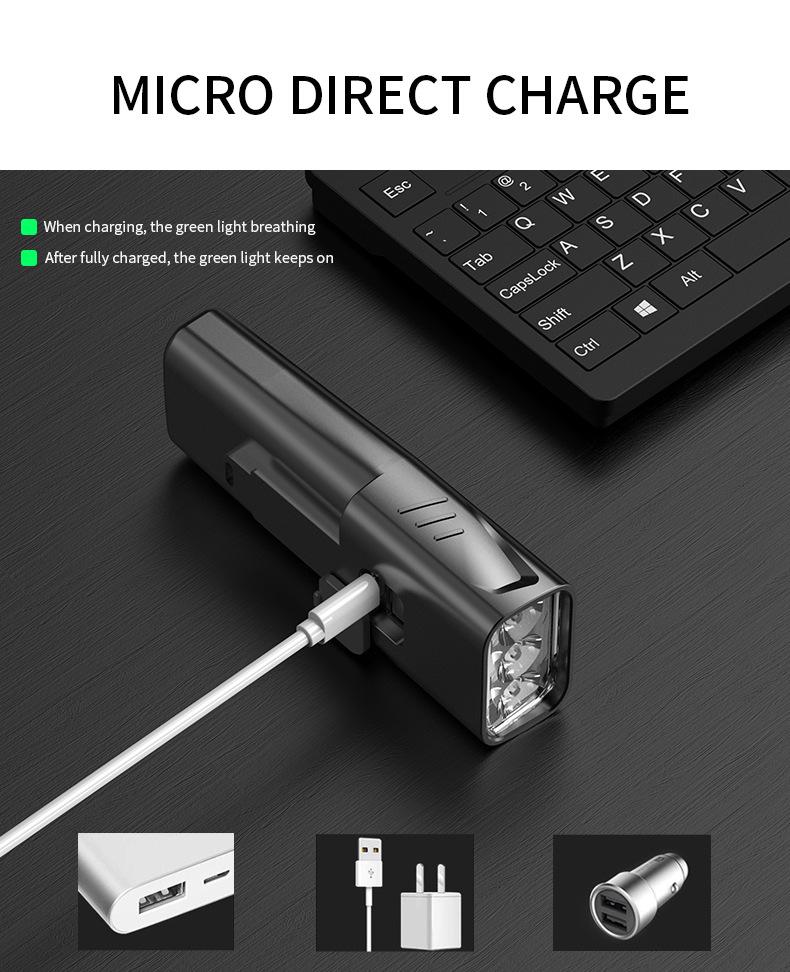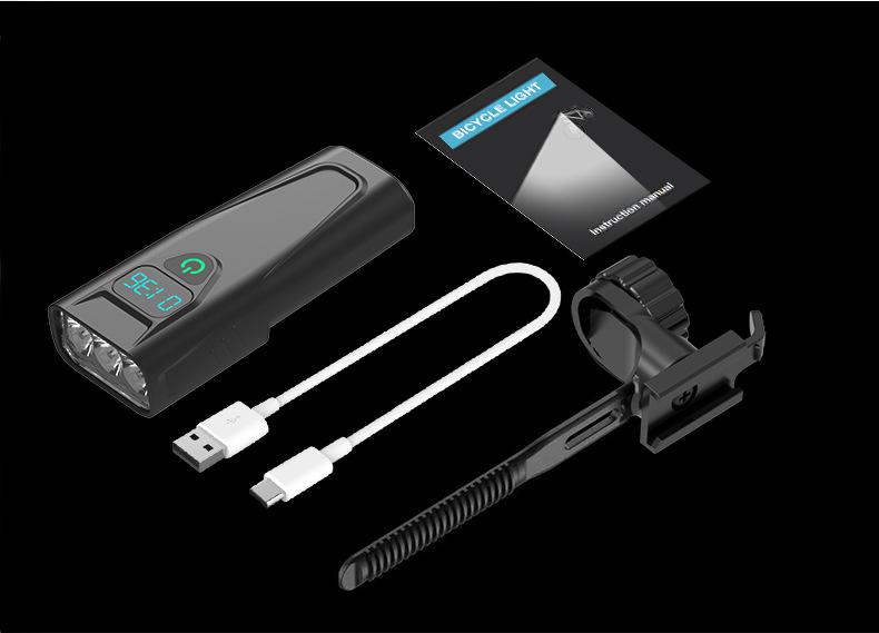 Accesorios del producto: faro, soporte de 360 grados, cable USB de 0.5 metros, manual de instrucciones, embalaje en caja de color