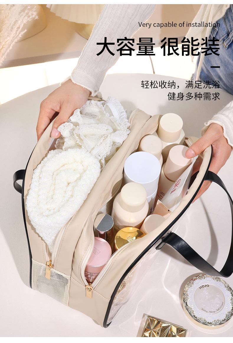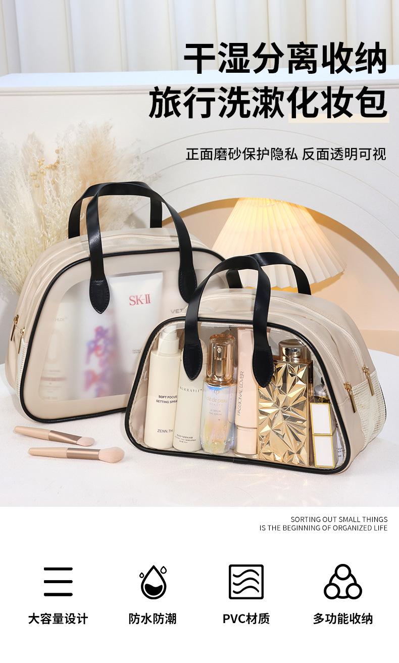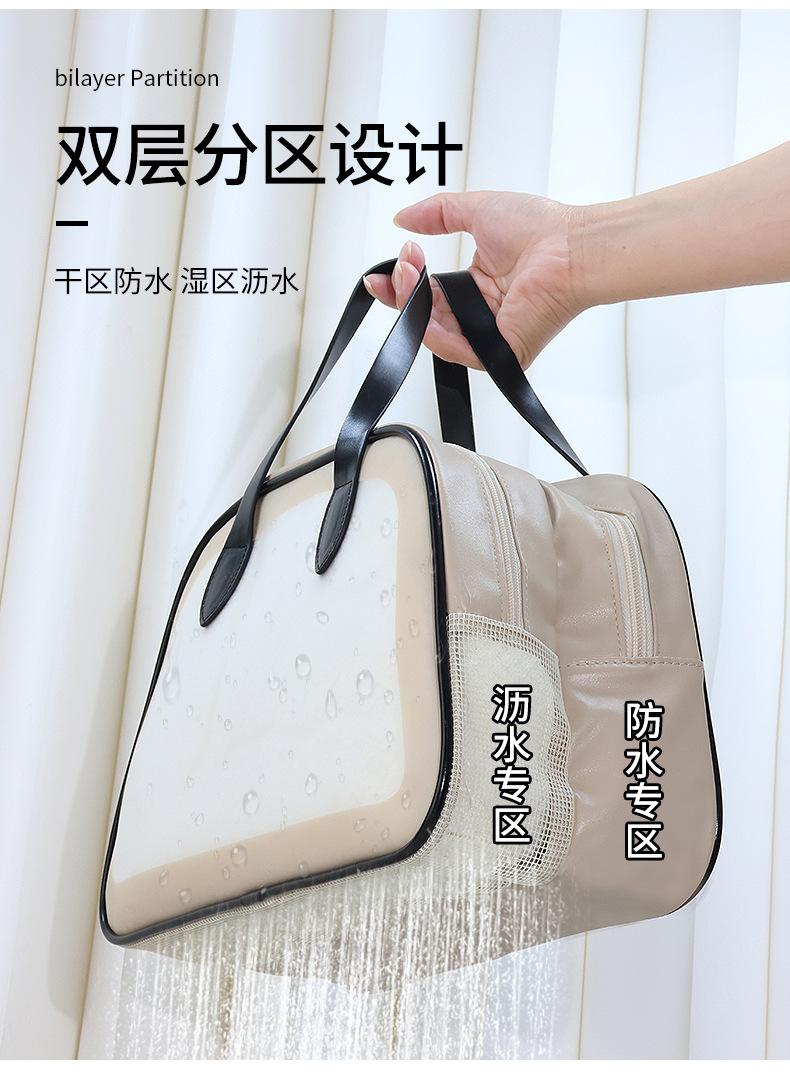 Bolsa de lavado para mujer, de doble capa, portátil, de alto valor, impermeable, para viajes, natación, fitness, baño, maquillaje, bolsa de almacenamiento separada para ropa seca y húmeda.