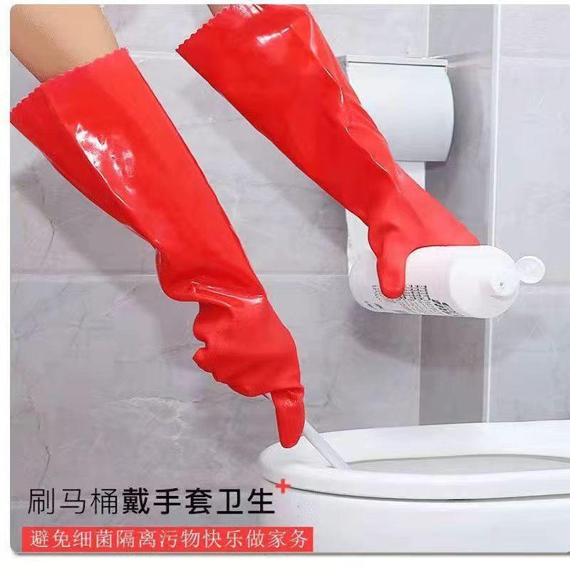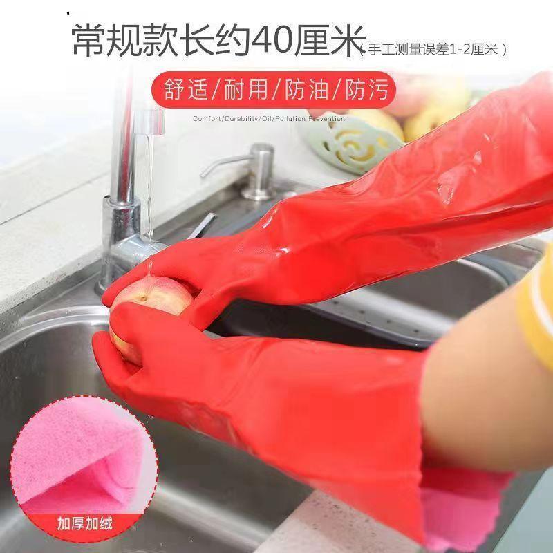 Guantes para lavar platos cocina hogar guantes de terciopelo engrosados lavandería invierno alargados goma impermeables cuero cálidos hombres y mujeres