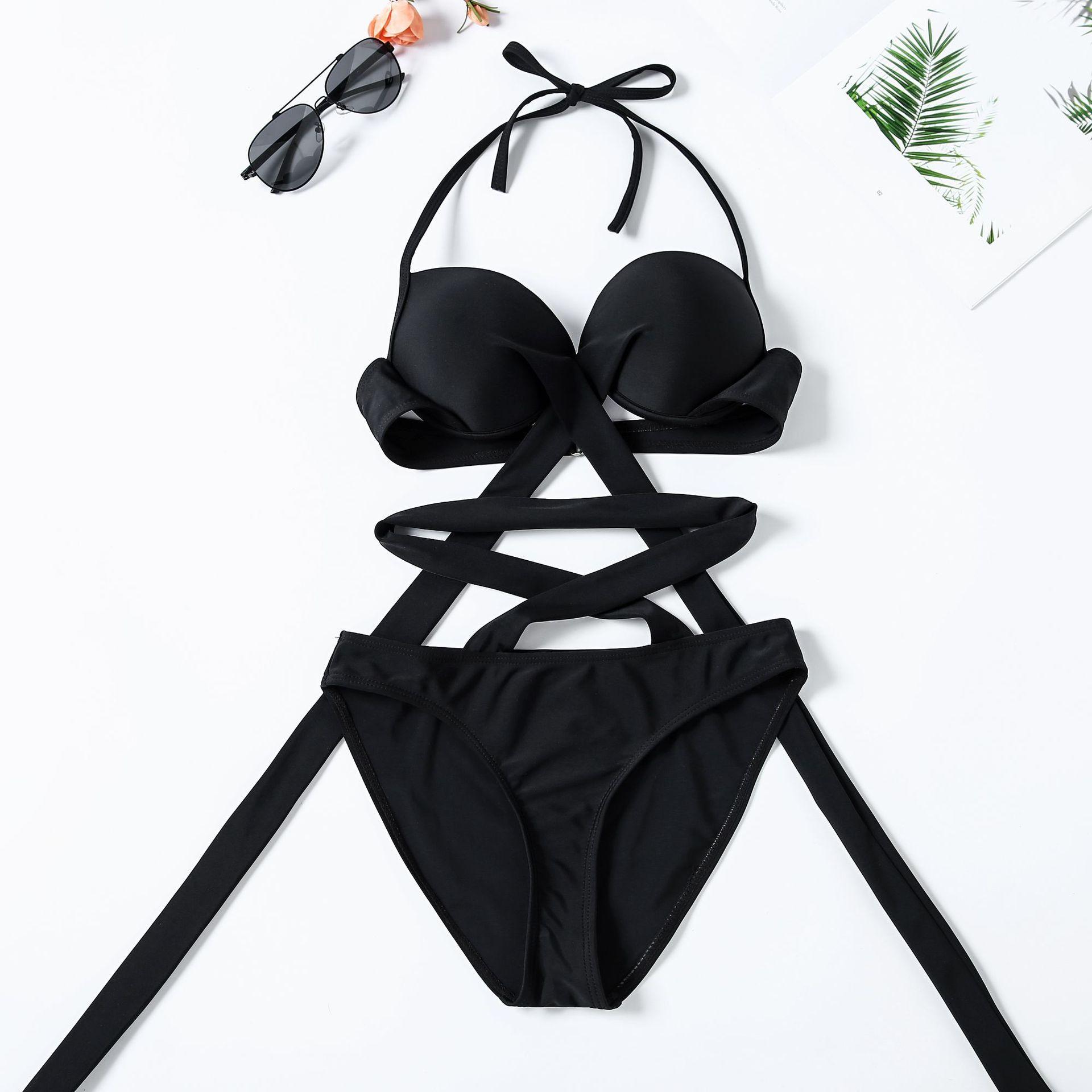 Bikini push up de comercio exterior 2023, traje de baño dividido para mujer, color blanco y negro, venta al por mayor de fábrica.