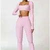 Pantalones deportivos de cintura alta color melocotón, traje de yoga teñido anudado, pantalones deportivos de manga larga cepillados color piel, traje de yoga para mujer