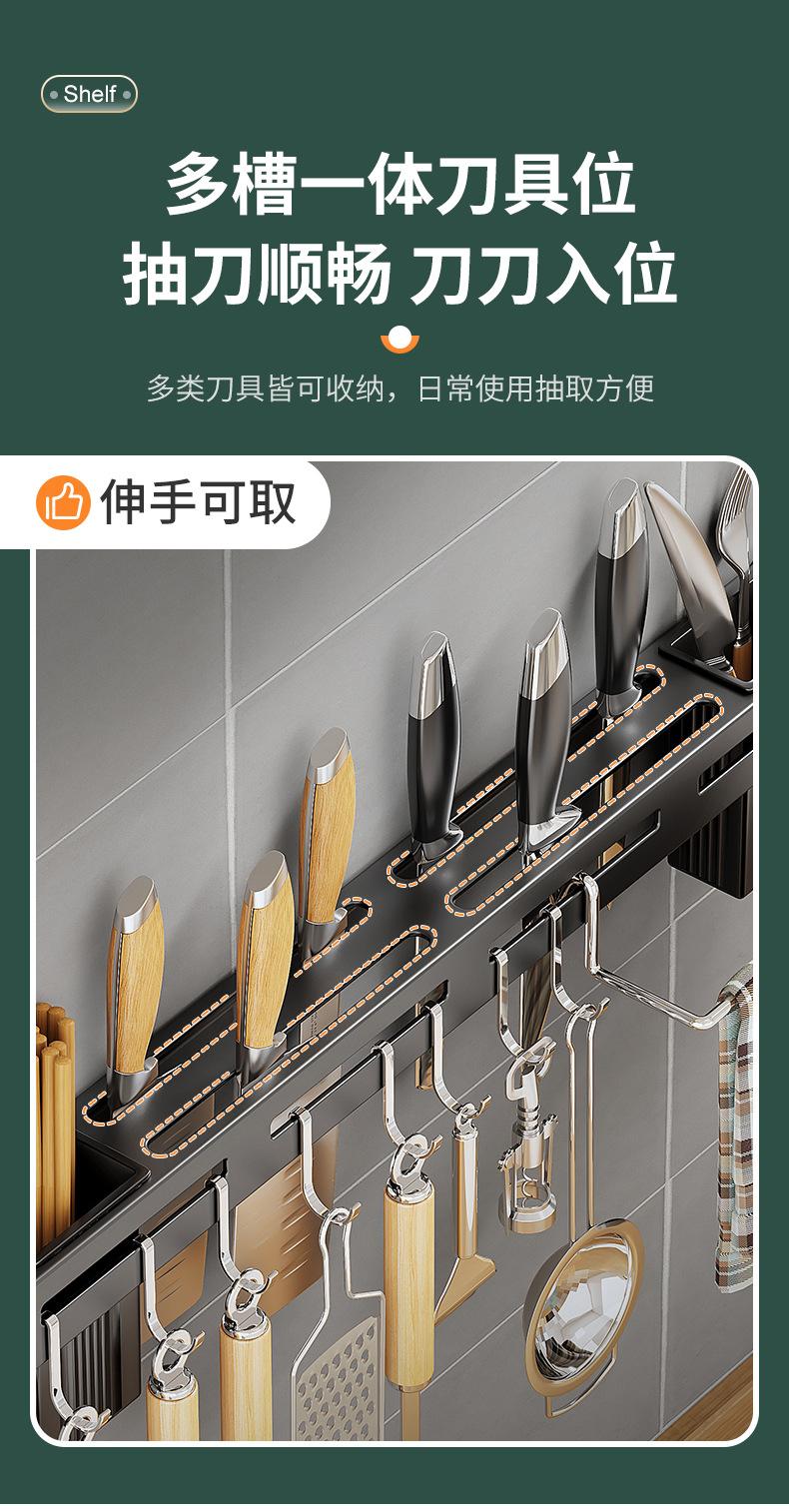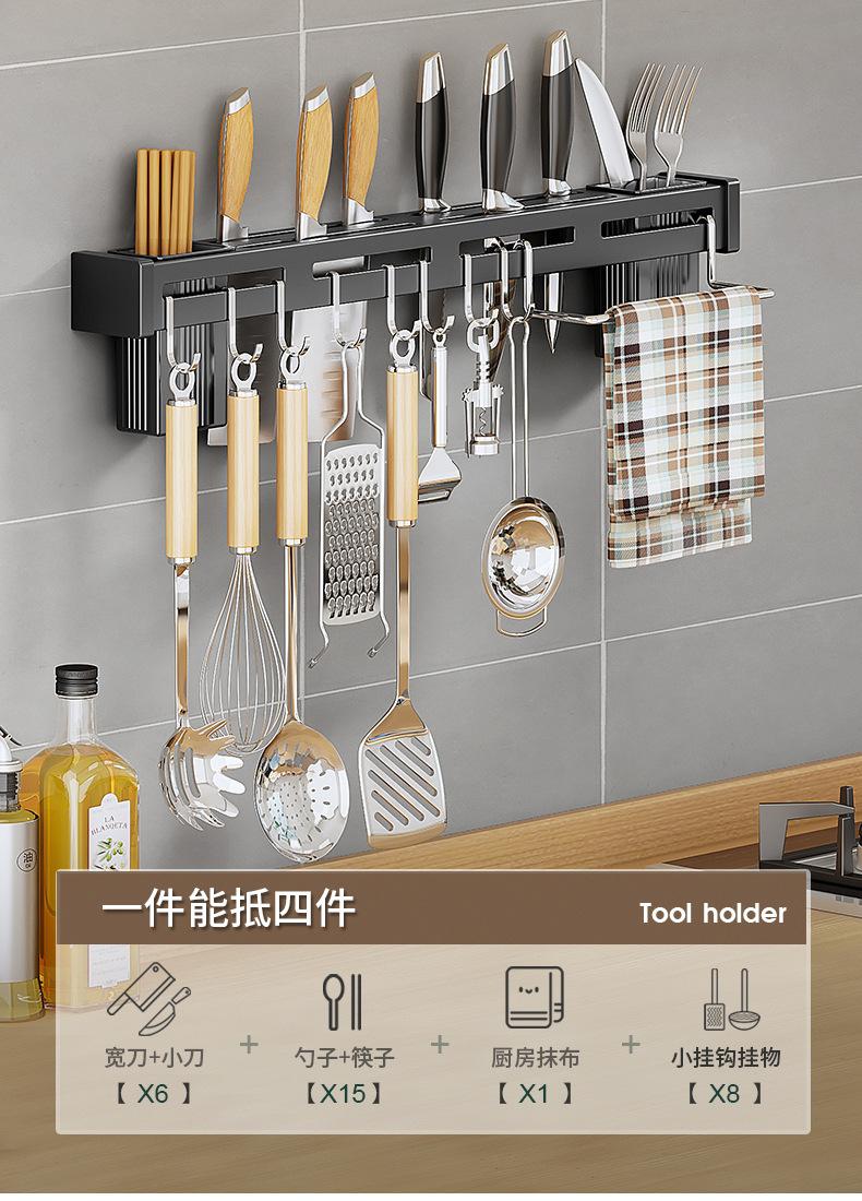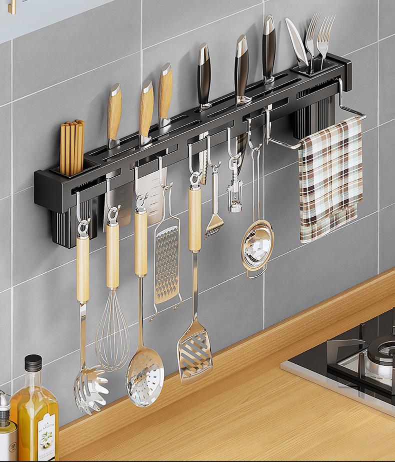 Soporte para Cuchillos de Acero Inoxidable Transfronterizo, Estante de Cocina Montado en la Pared sin Perforaciones, Estante de Almacenamiento Multifuncional para Palillos y Cuchillos para Gabinetes