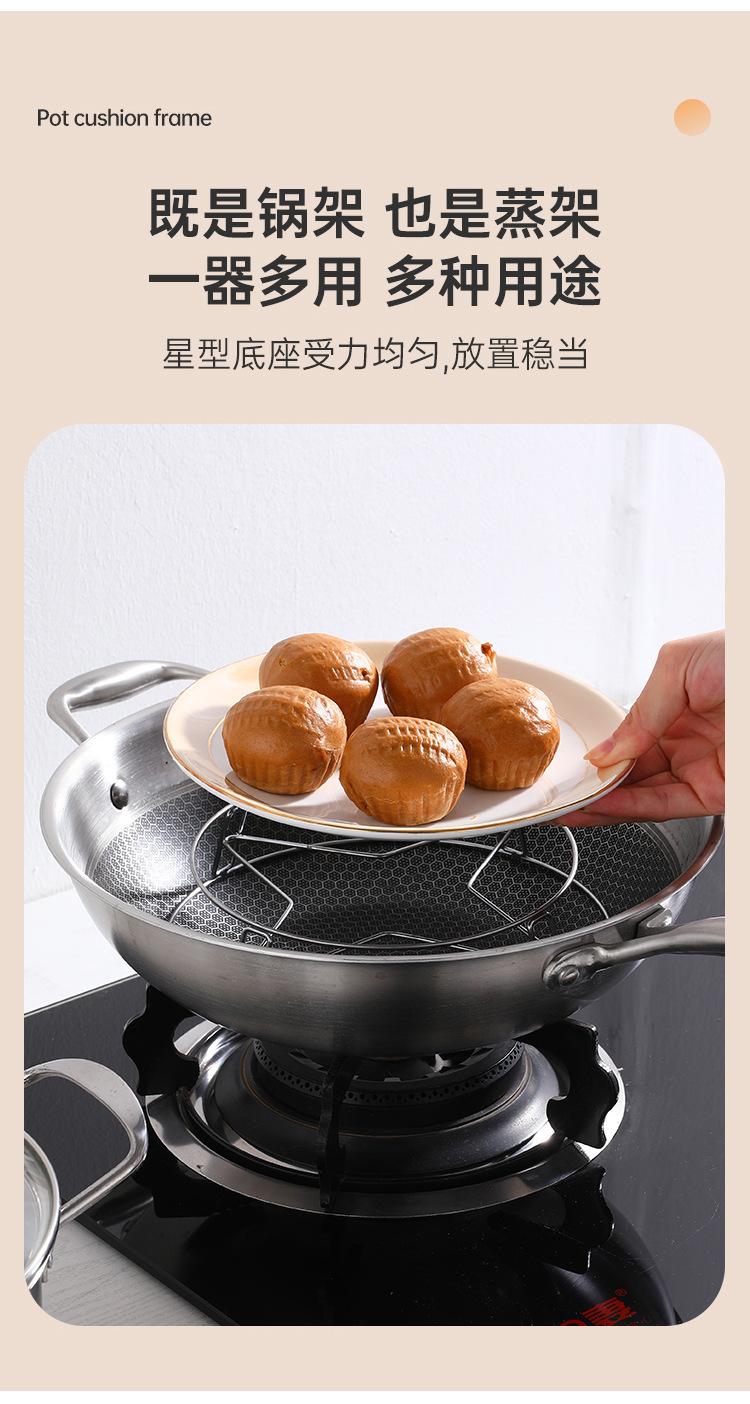 Estante para ollas de cocina de acero inoxidable para el hogar, estante para vaporera de cocina, estante para wok de doble capa audaz, almohadilla de aislamiento, estante para vapor anti-escaldaduras al por mayor
