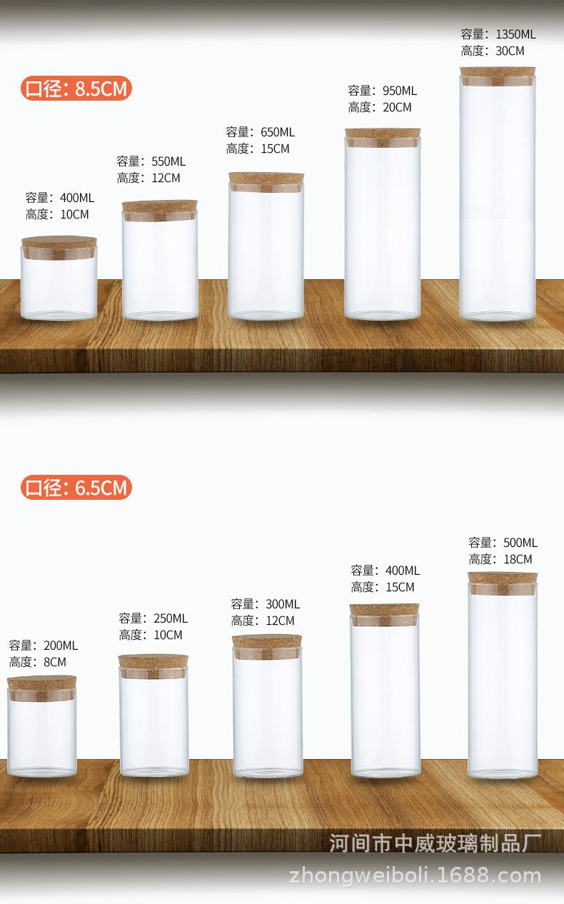 Diameter 65 * Height 80 200ML with cork cover, Diameter 65 * height 100 250ML with cork cover, Diameter 65 * h...