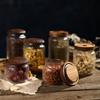 Frasco de Condimento de Vidrio Almacenamiento Frasco Conservador con Tapa de Madera, Frasco de Almacenamiento Redondo Transparente a Prueba de Humedad, Frasco Sellado de Alto Borosilicato