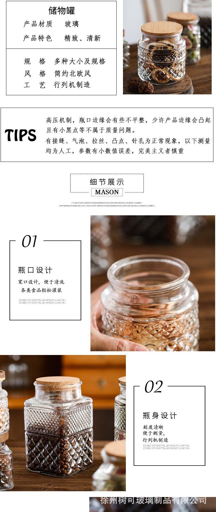 Botella de Vidrio Transfronteriza Frasco de Vidrio Frasco de Almacenamiento de Vidrio Frasco Sellado Frasco para Alimentos Frasco para Café Frasco de Almacenamiento de Granos de Cocina