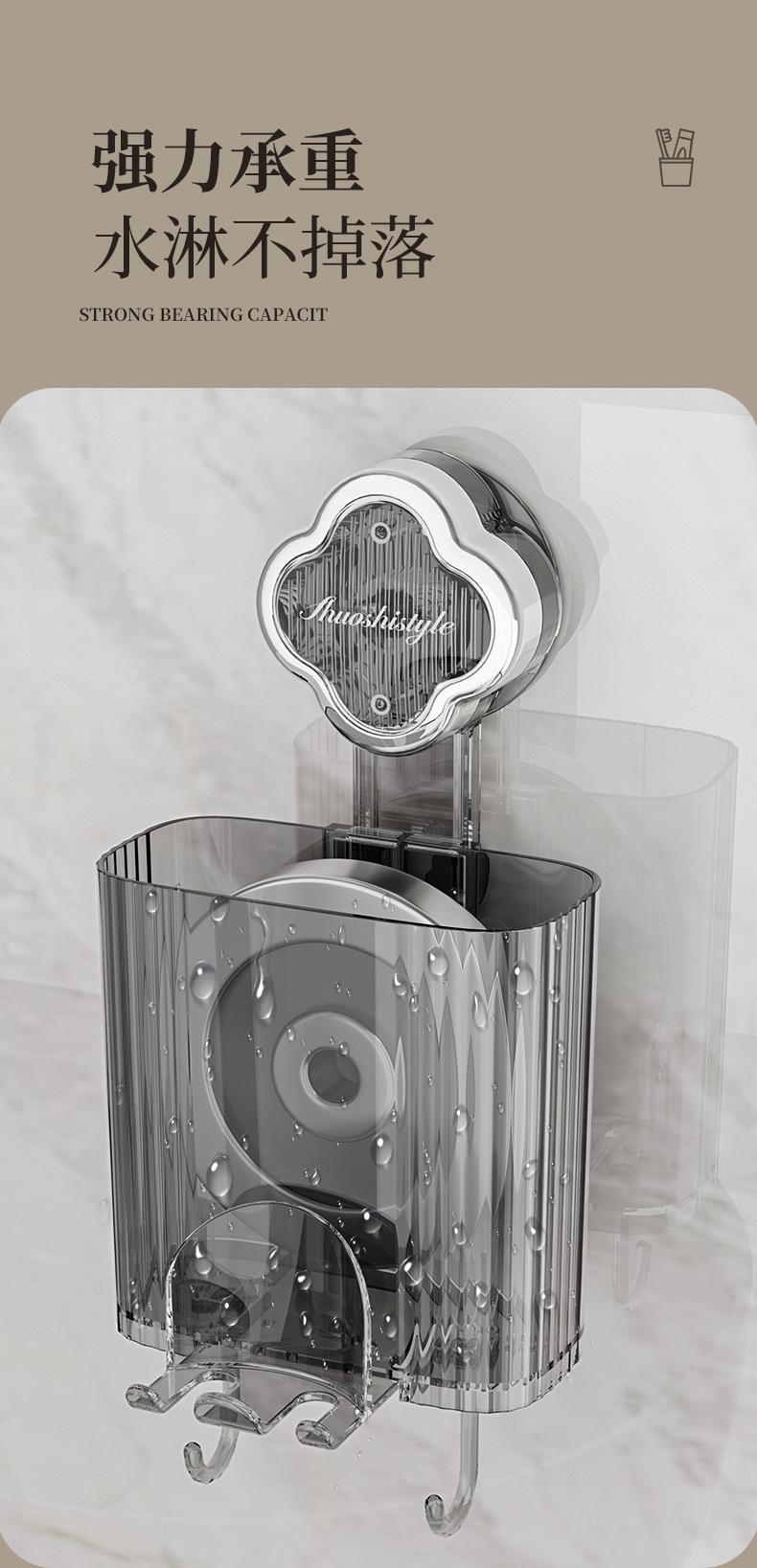 | Nueva caja de ajo sin perforaciones montada en la pared con ventosa, cesta colgante, lavabo de baño, caja de almacenamiento de cosméticos de pared |