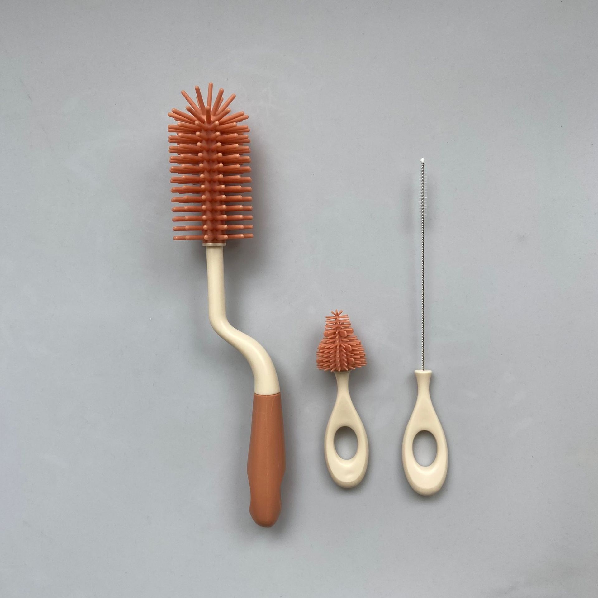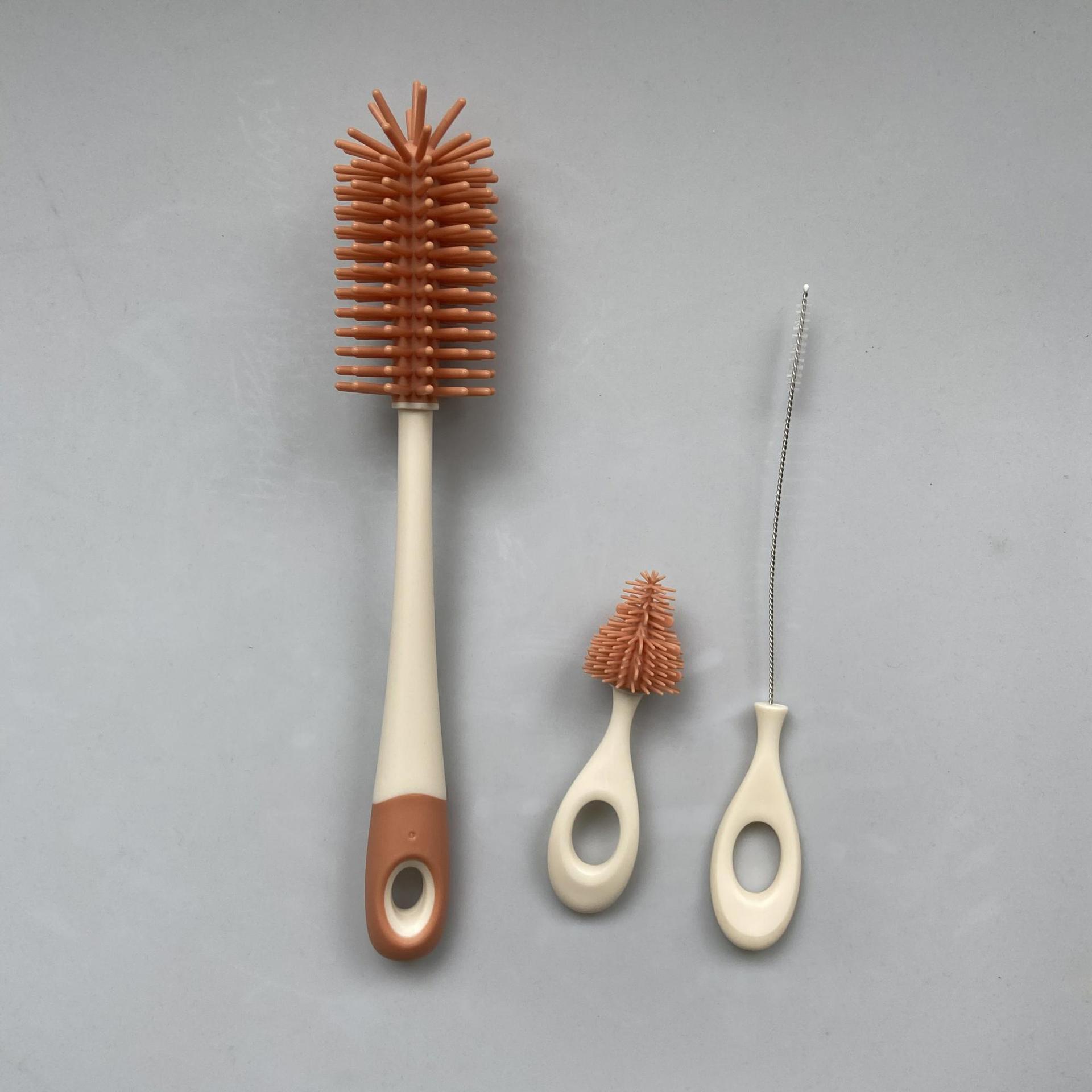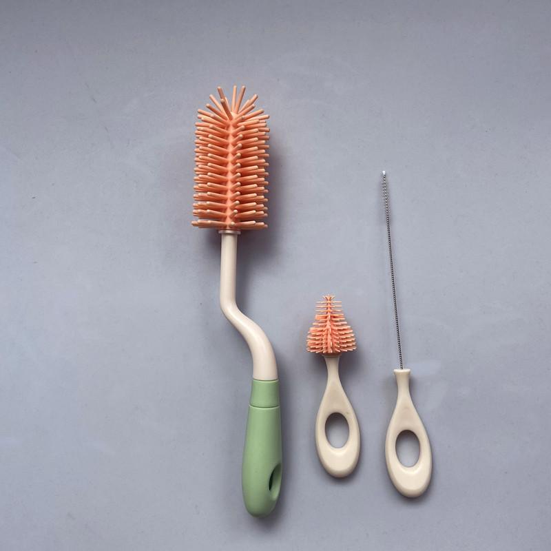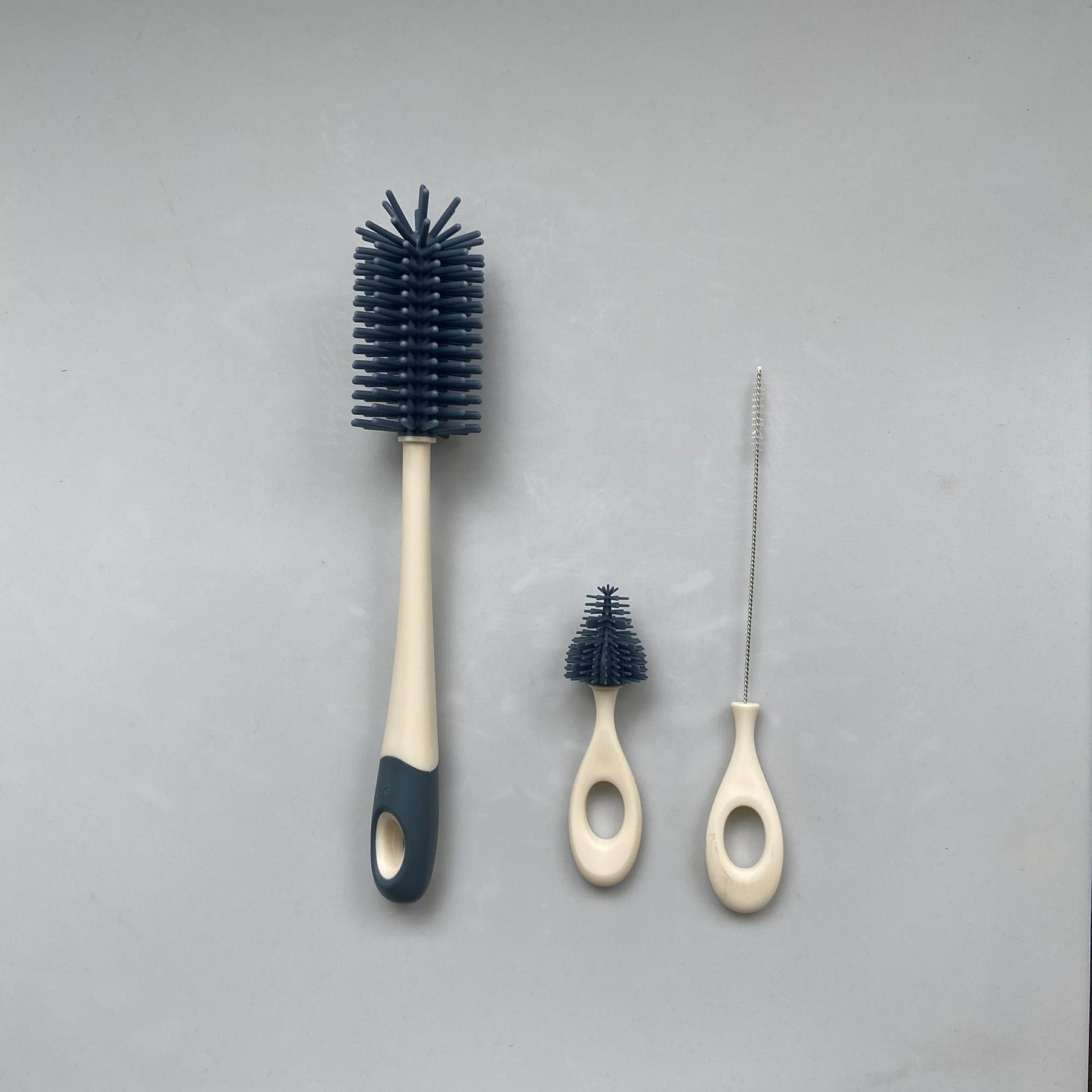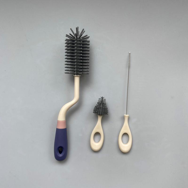 Cepillo de Silicona para Biberón Cepillo para Tetina Cepillo Limpiador de Contenedor Vaso de Agua para Biberón Juego de Tres Piezas
