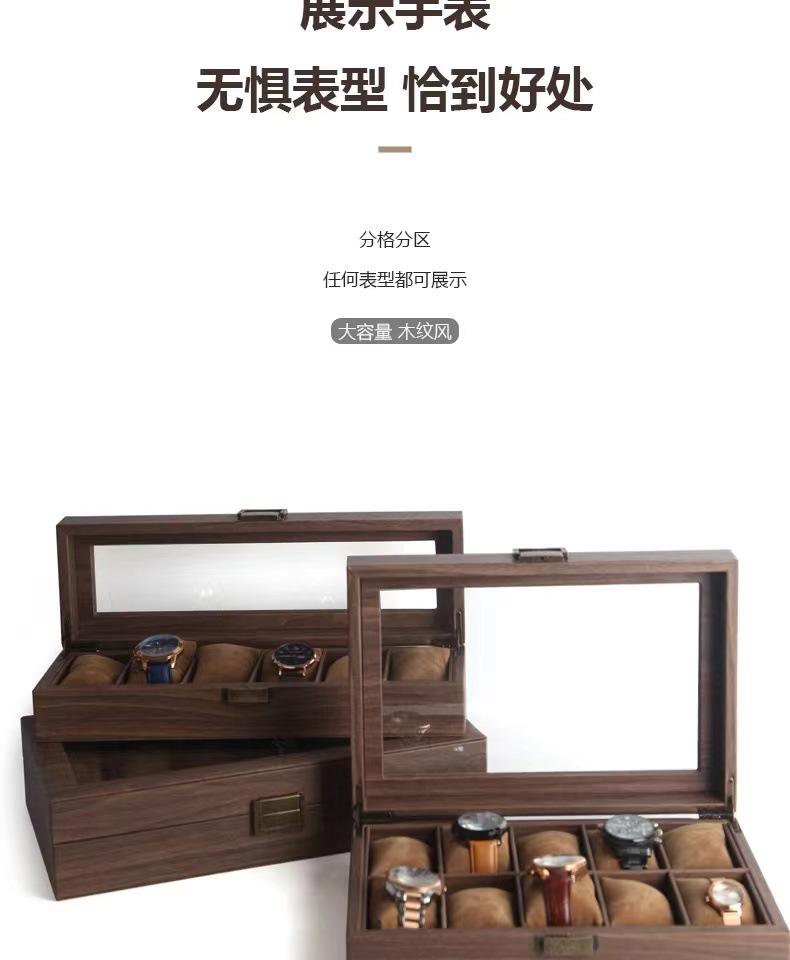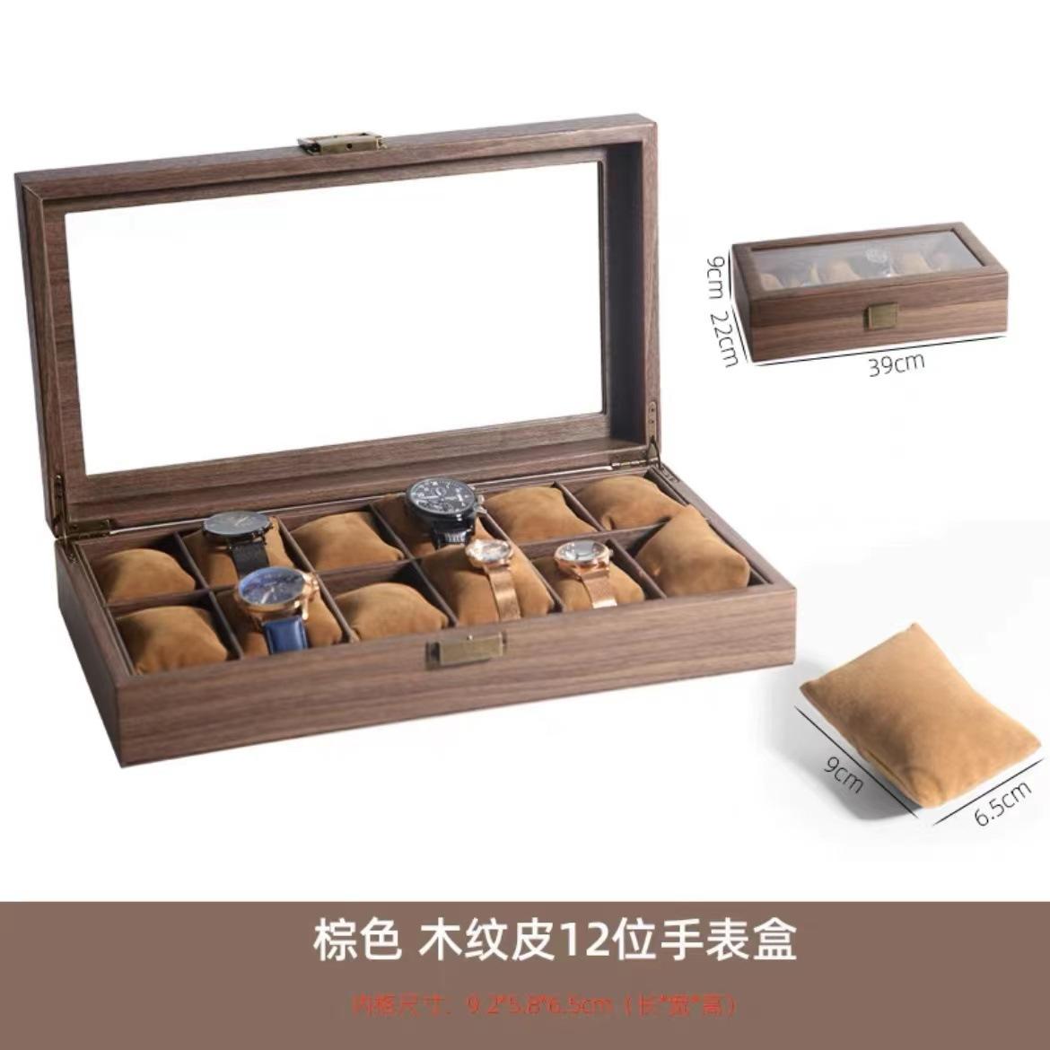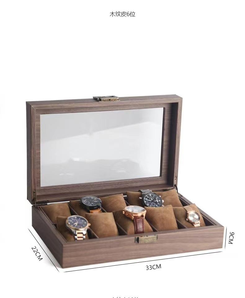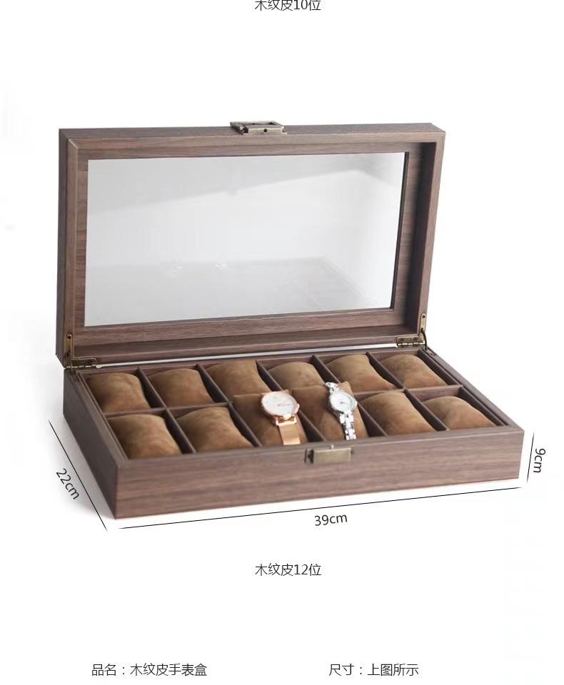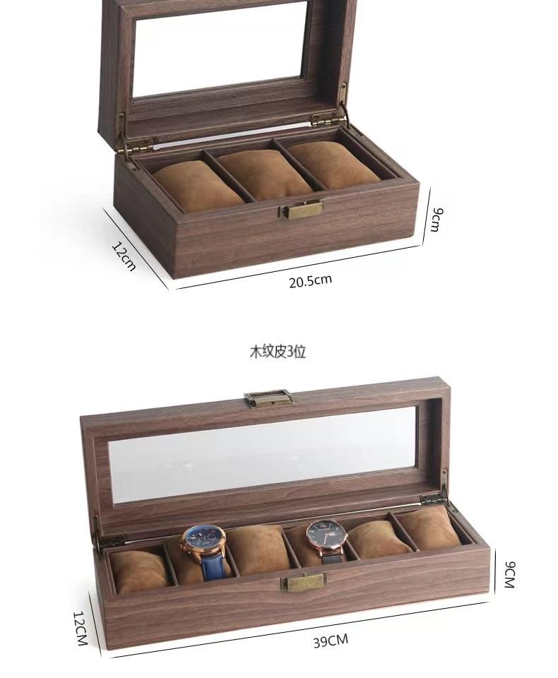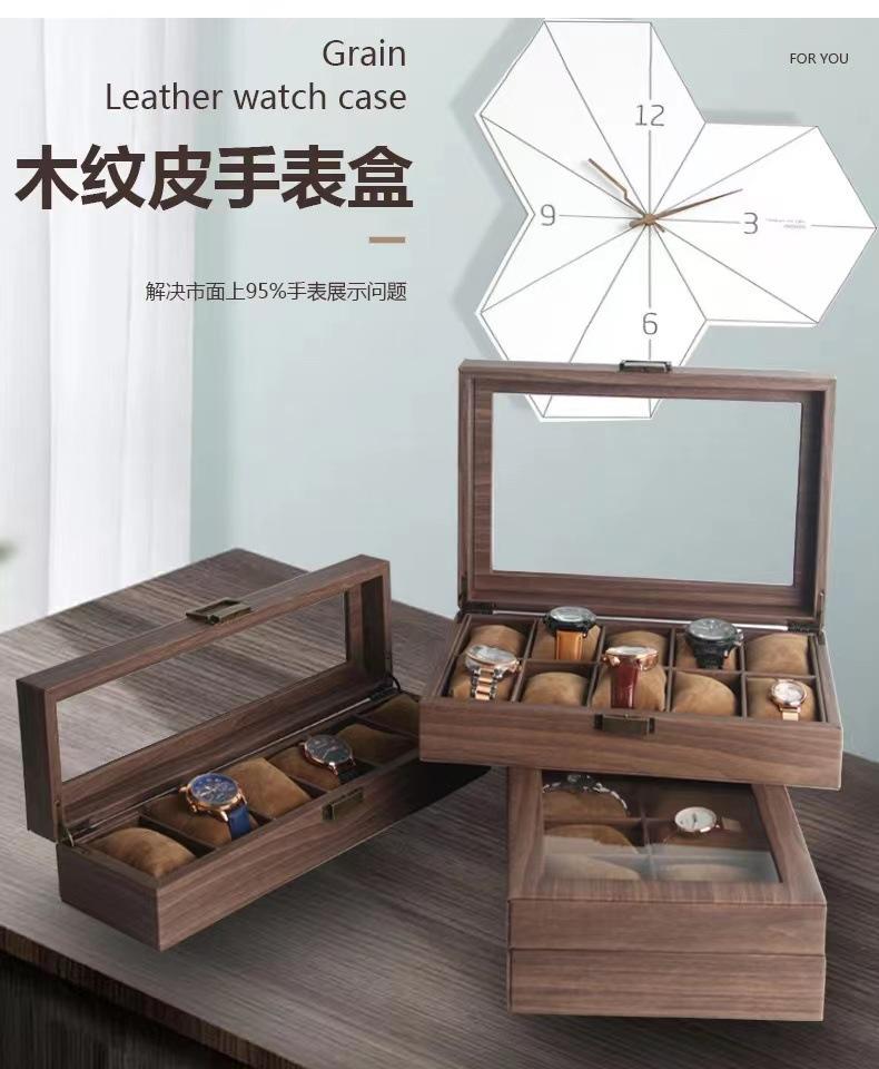 Caja para reloj de cuero con veta de madera a prueba de polvo, caja para guardar joyas, claraboya de vidrio, caja para colección de relojes de pulsera, caja para exhibir relojes de pulsera