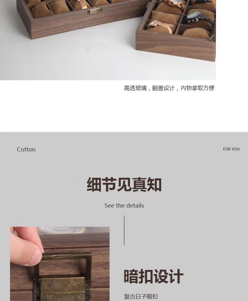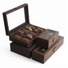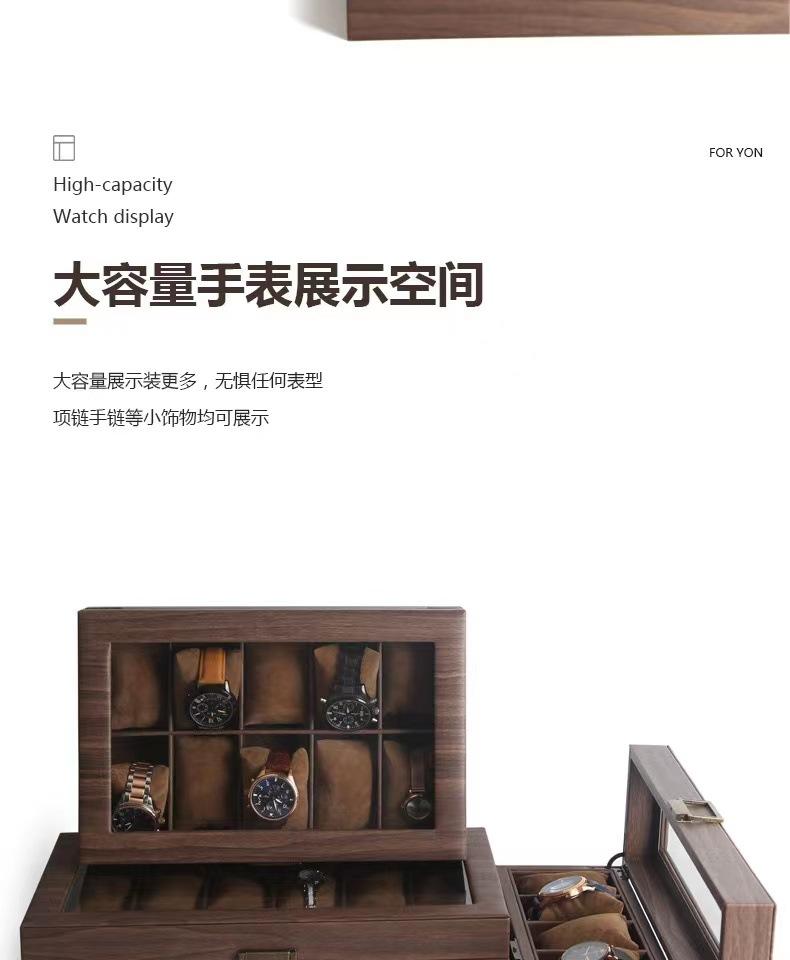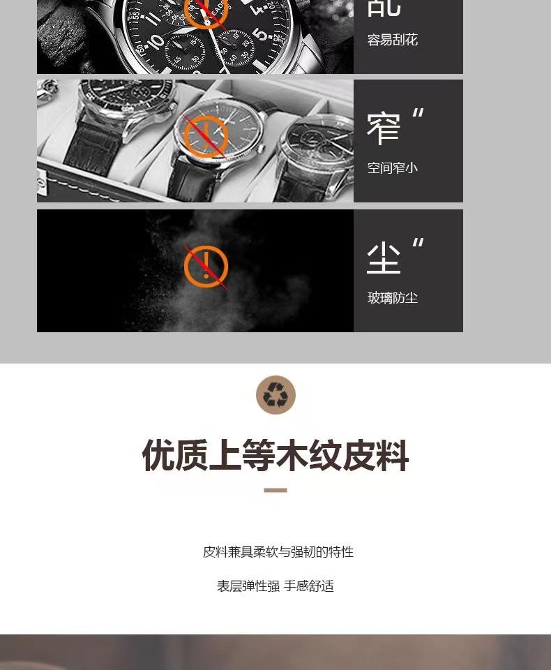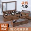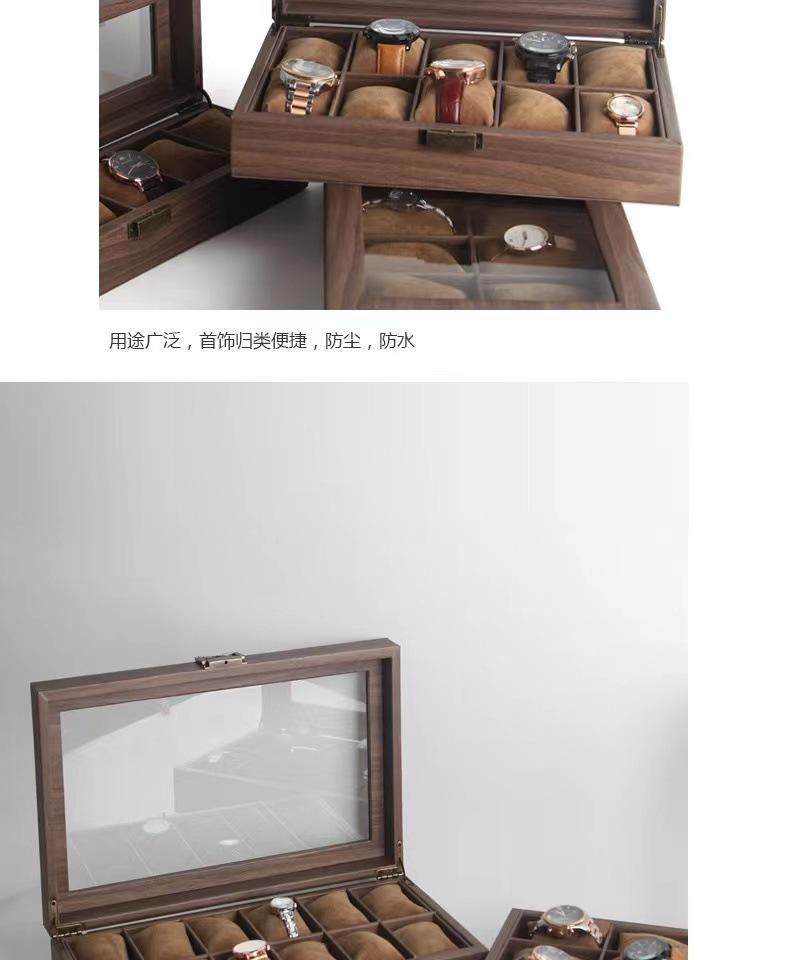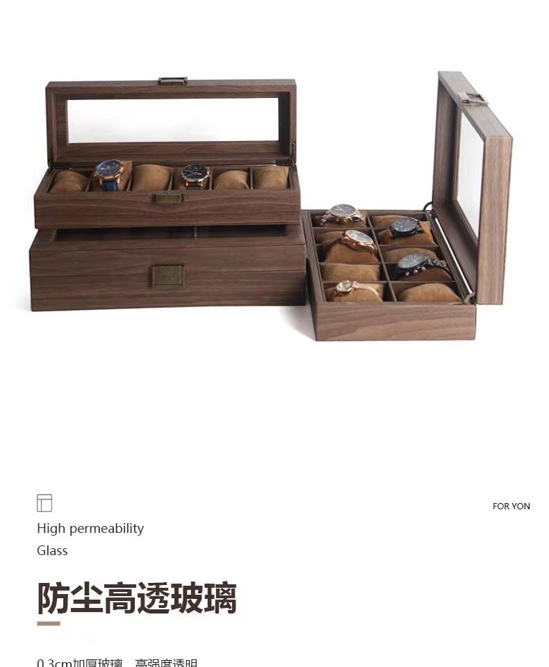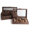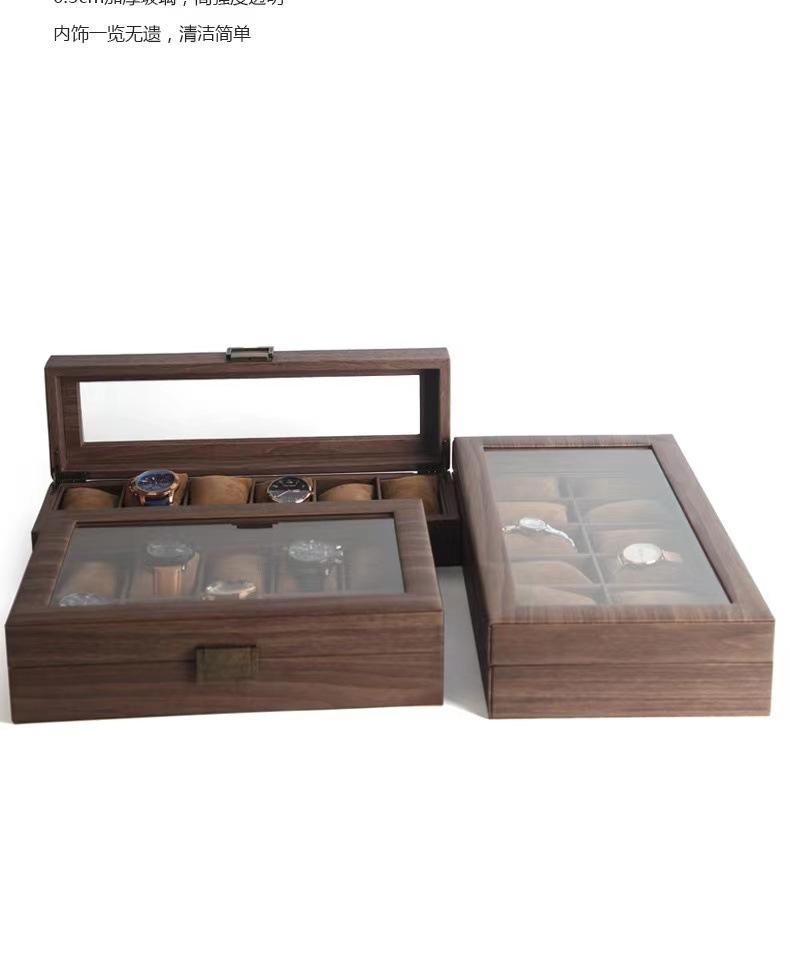 Caja para reloj de cuero con veta de madera a prueba de polvo, caja para guardar joyas, claraboya de vidrio, caja para colección de relojes de pulsera, caja para exhibir relojes de pulsera