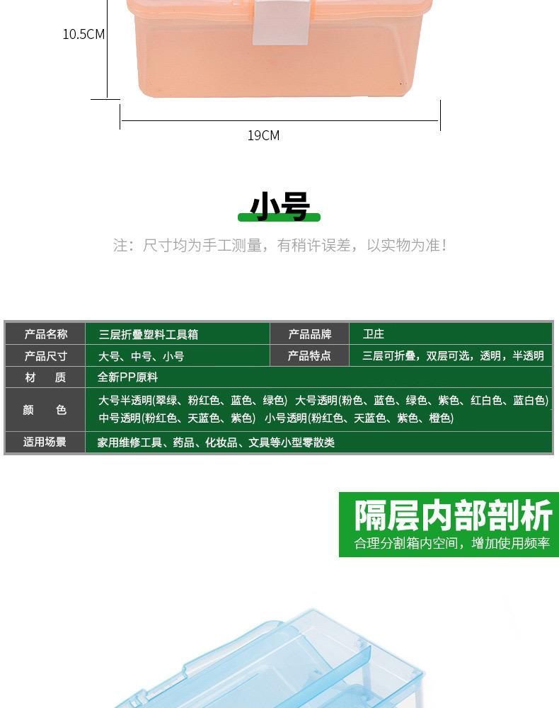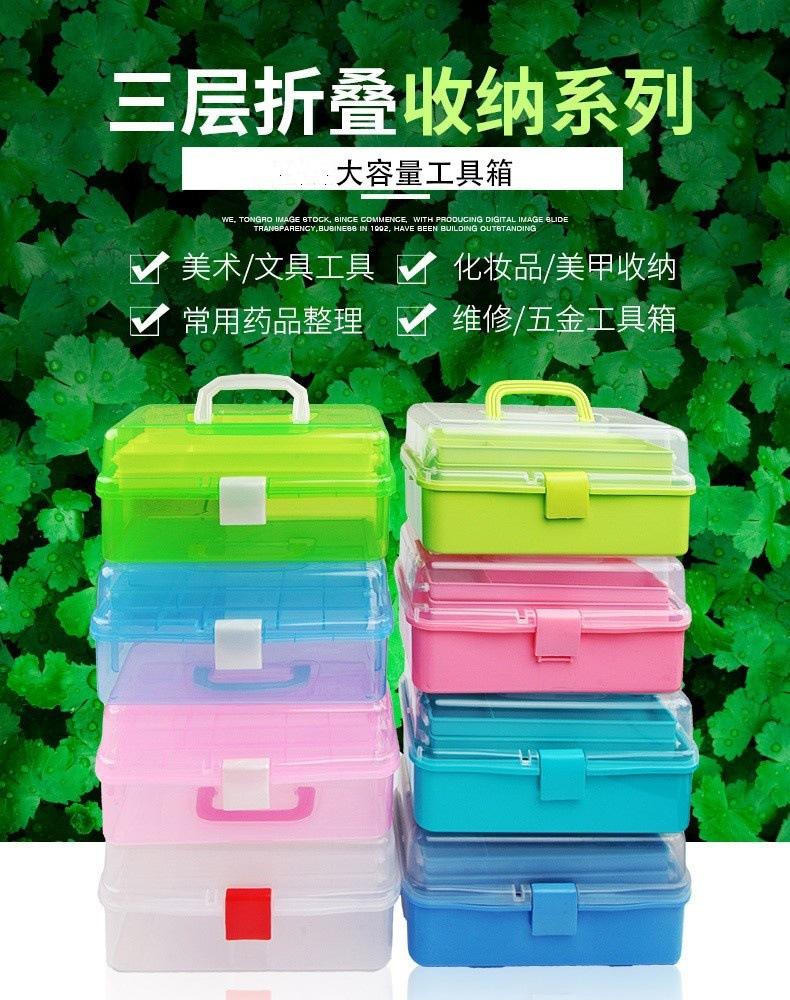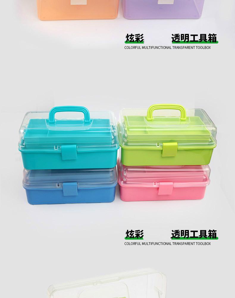 Caja de Herramientas de Arte Engrosada Tres Capas Plástico Transparente Manicura Caja de Herramientas de Ferretería Portátil Caja de Almacenamiento para Estudiantes Venta al Mayoreo