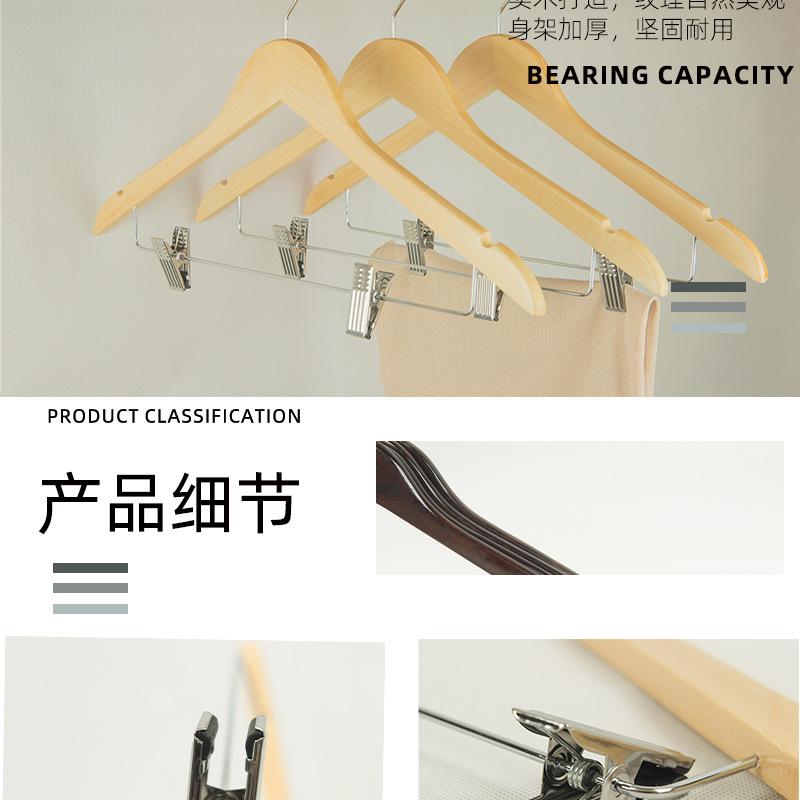 Amazon transfronterizo dedicado a perchas de hotel de madera maciza color natural retro de madera antideslizante sin costuras para ropa