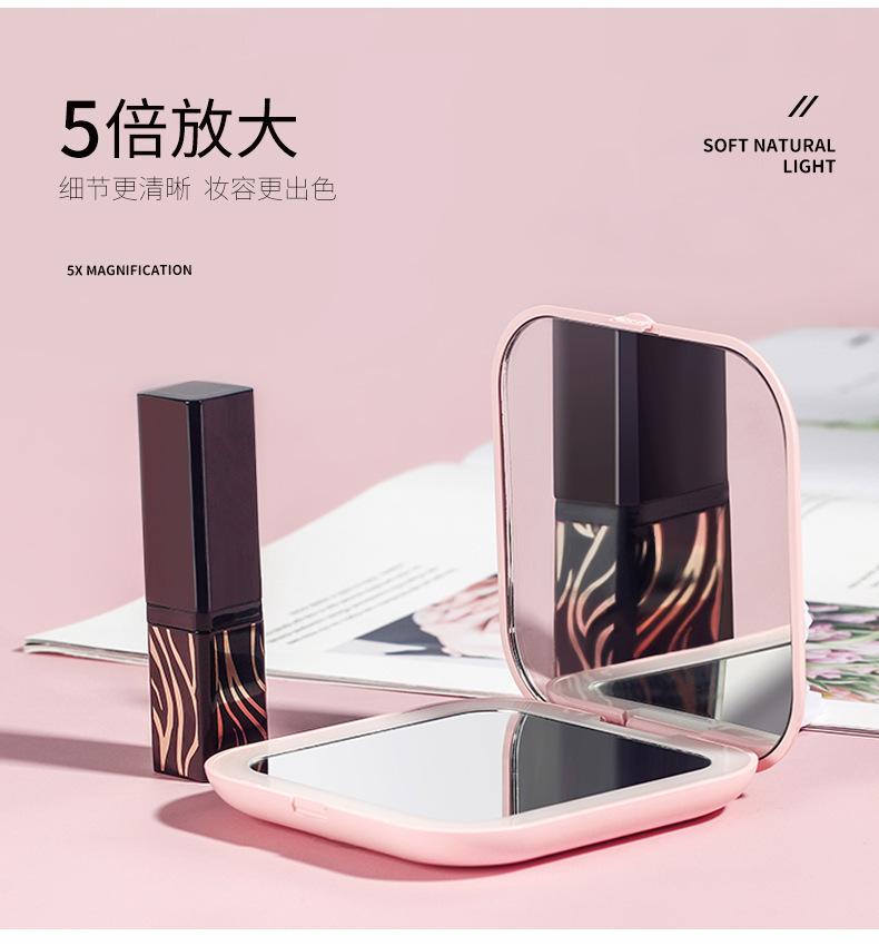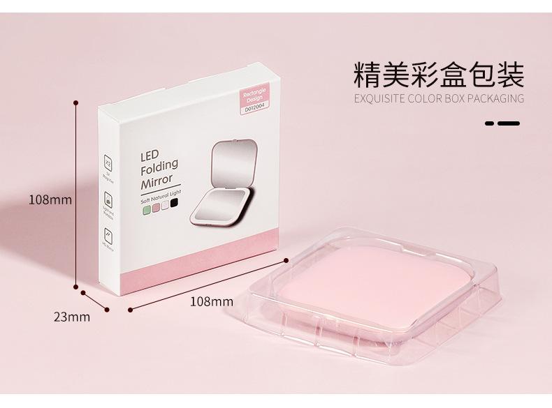Espejo de Maquillaje LED Viajero Portátil con Luz Cuadrado Doble Cara Plegable Espejo de Belleza Pequeño Espejo Redondo LED Personalizado
