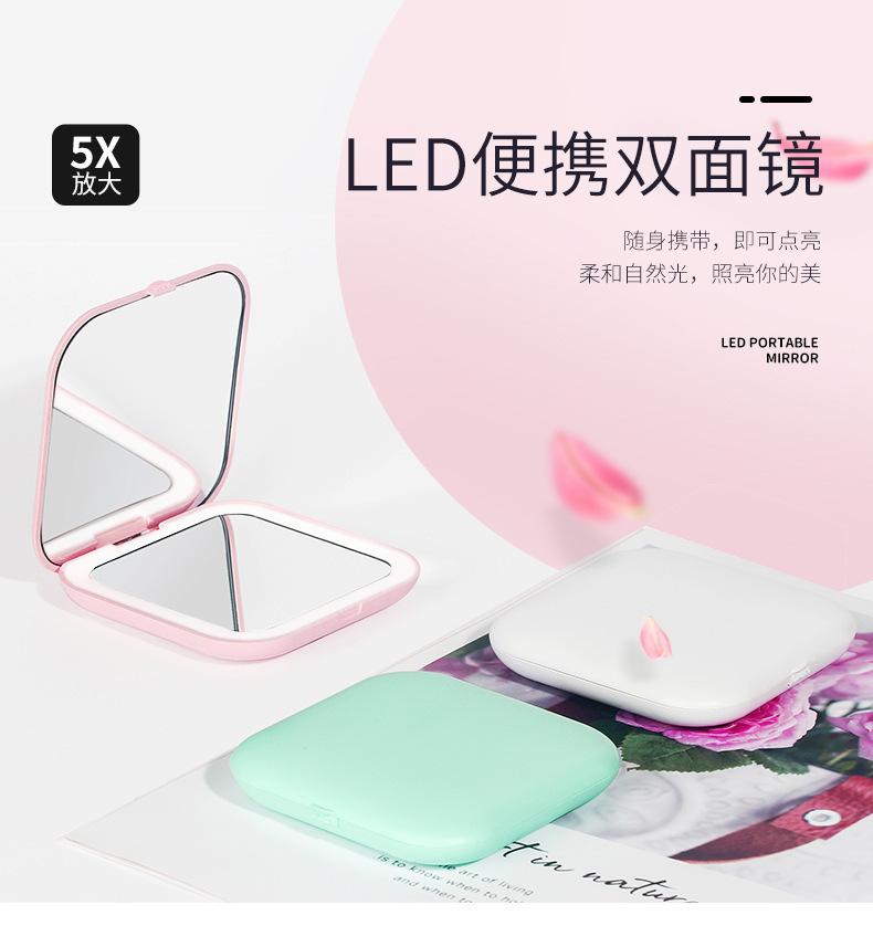 Double-sided small square mirror-white (battery version) ready-made version, Double-sided small square mirror-...