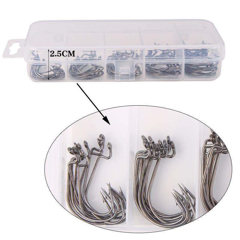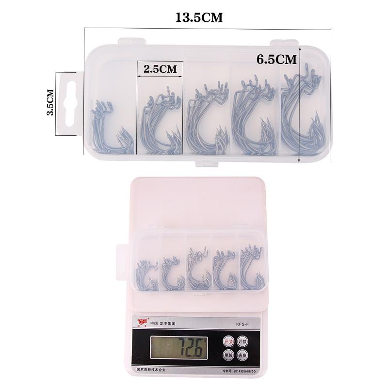 Productos incluidos: 10 piezas de ganchos de manivela 2#, 10 piezas de ganchos de manivela 1#, 10 piezas de ganchos de manivela 1/0#, 10 piezas de ganchos de manivela 2/0#, 10 piezas de ganchos de manivela 3/0#