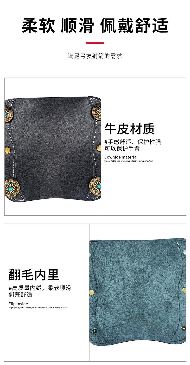 Protector de brazo H2 de stock listo del fabricante al por mayor Arco recurvo tradicional de tiro recto Protector de brazo de piel de vaca Fácil de usar Equipo de tiro con arco Transfronterizo