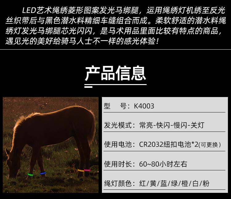 Cuerda de advertencia para caminar de noche bordada LED arte cuerda de luz luminosa luz para polainas de caballo con batería impermeable suministros ecuestres