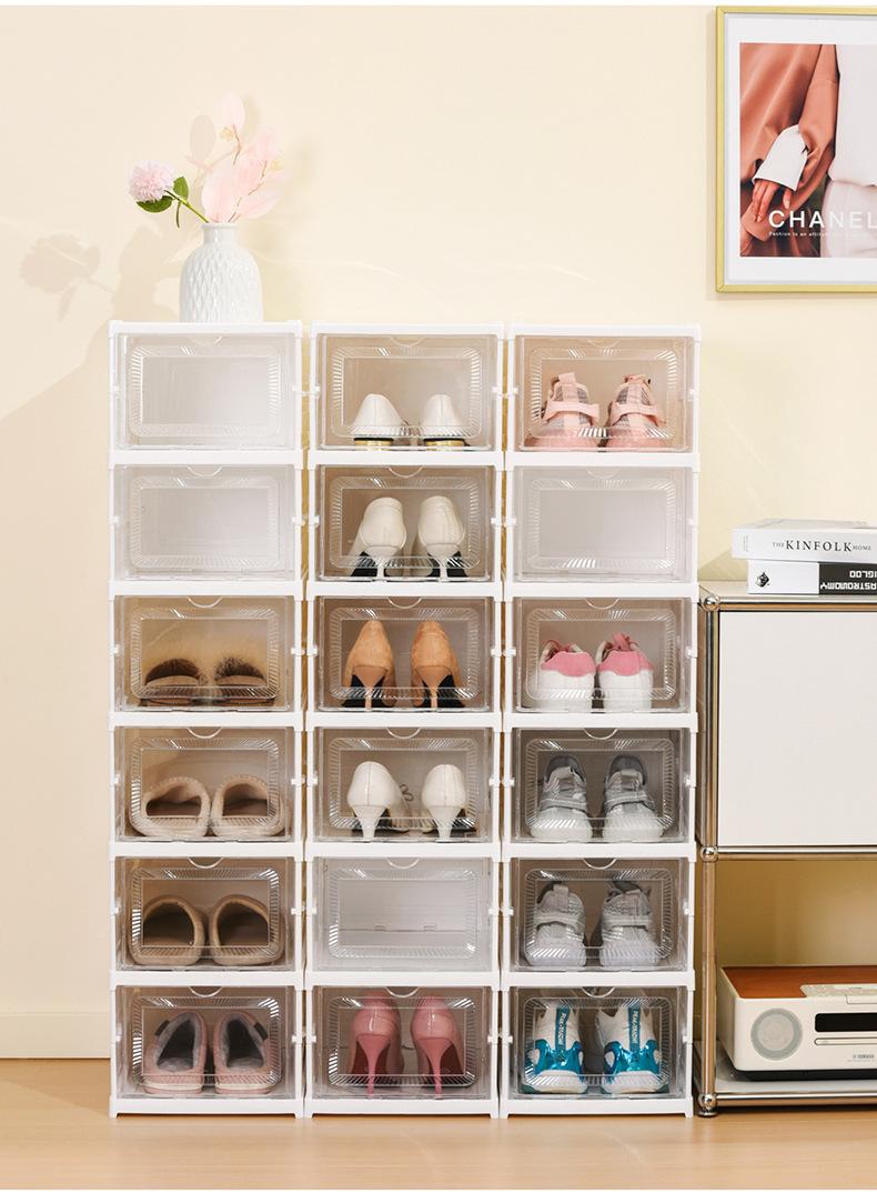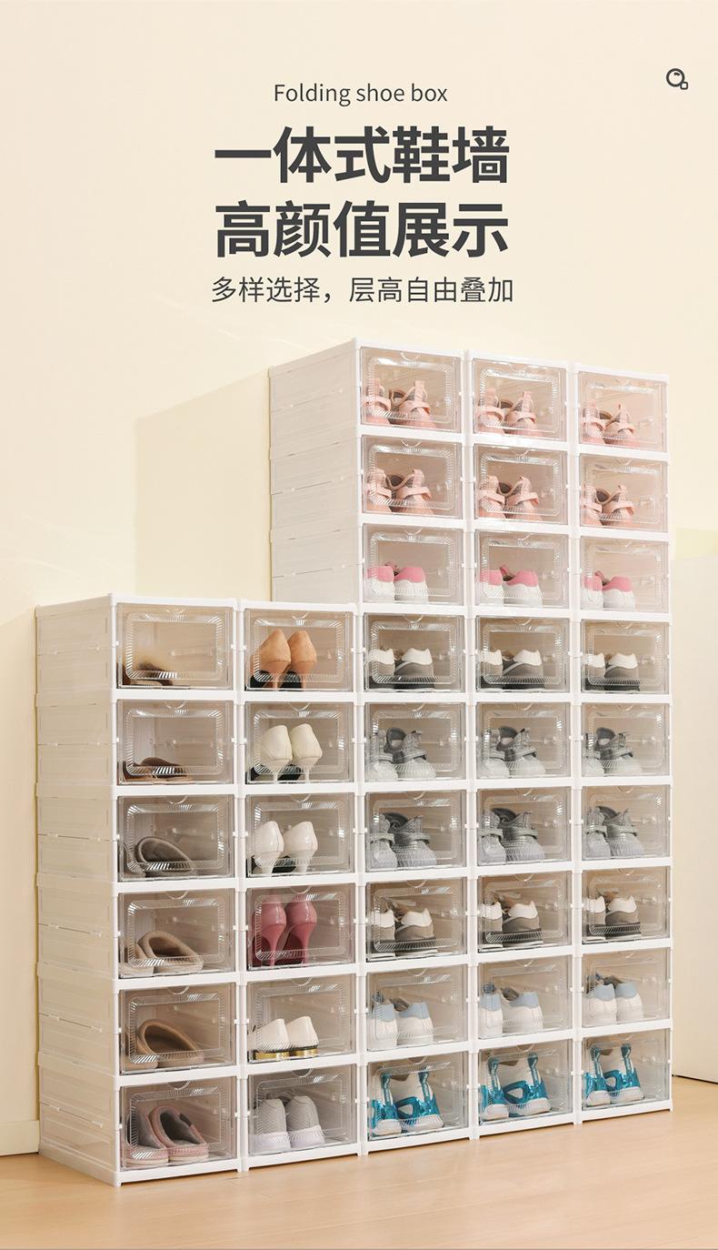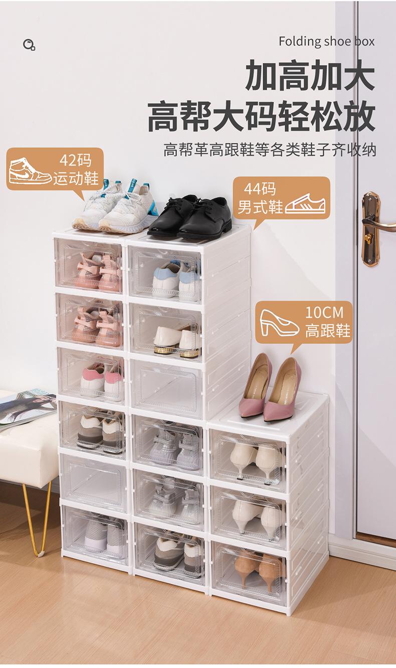 Caja de zapatos plegable para puerta de casa, sin instalación, transparente, ahorra espacio