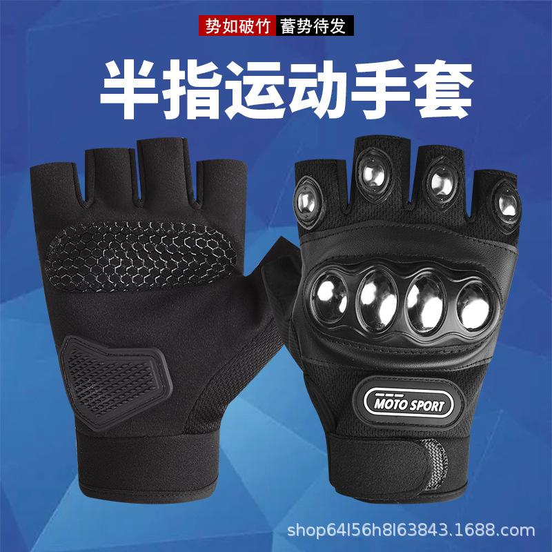 Guantes protectores de caída para motocicleta de acero inoxidable de carcasa dura de medio dedo para montar equipo para bicicleta de montaña para hombre antideslizantes