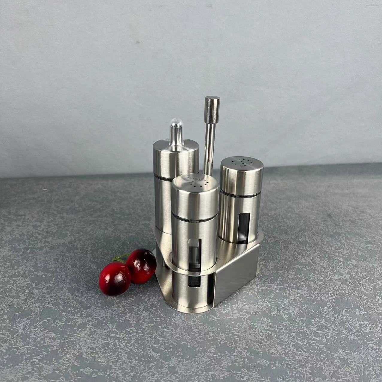 Tarro de condimentos de acero inoxidable visual a prueba de fugas botella de salsa de soya vinagre traje de tarro de condimentos traje de condimentos creativo para restaurante