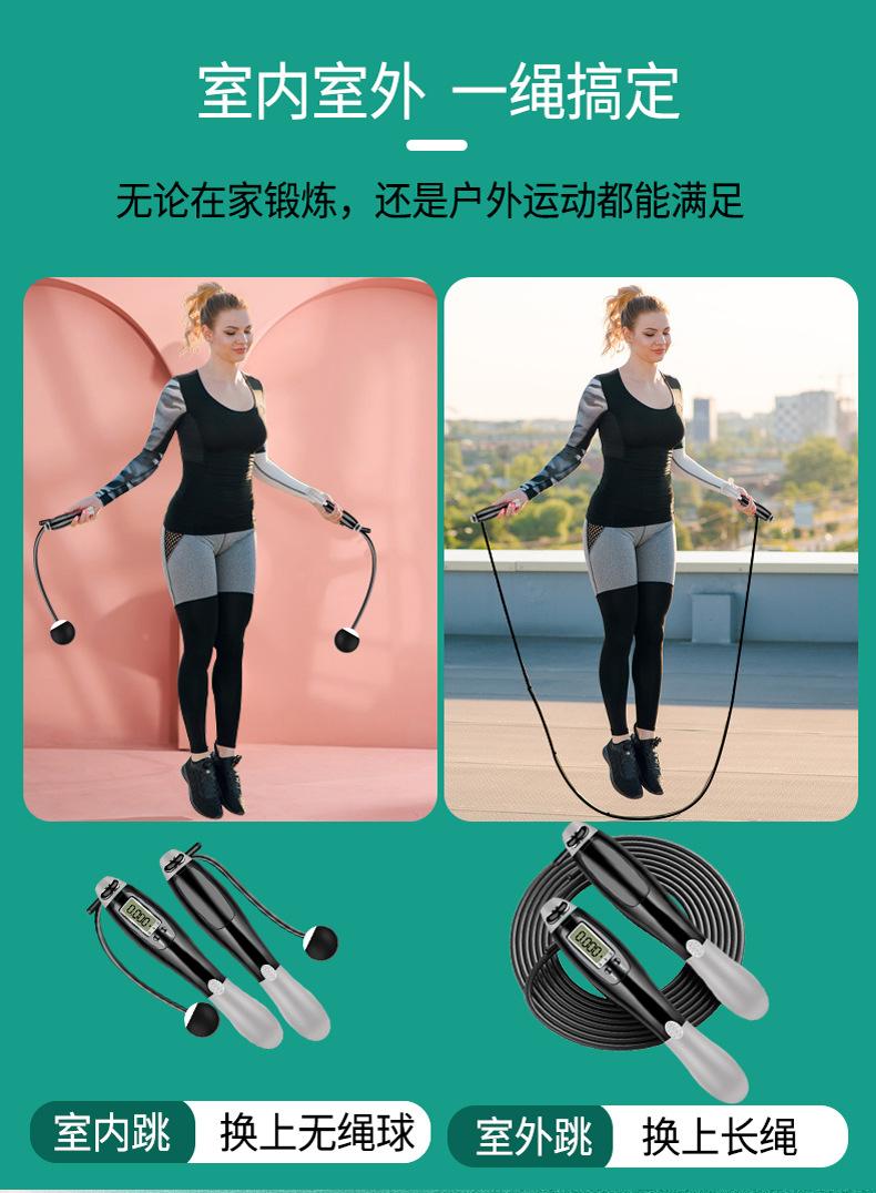Cuerda de saltar electrónica ajustable transfronteriza, cuerda de saltar inalámbrica de doble uso, cuerda de saltar de acero de acero para examen de ingreso a la escuela secundaria para estudiantes inteligentes de fitness