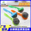 Práctico cepillo de acero inoxidable con mango para limpiar cuencos, utensilios de cocina, cepillo de bola de alambre de acero, cepillo para lavar ollas