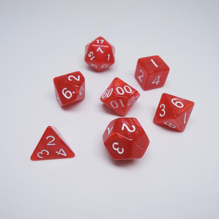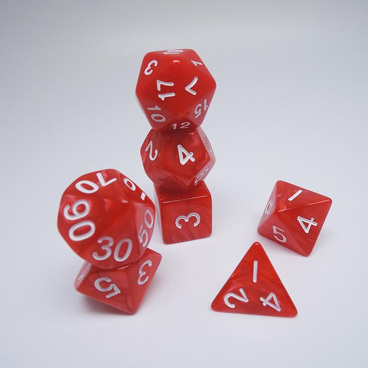 Este juego de dados multicara incluye siete especificaciones de dados digitales multicara: 3/6/8/10/12/20/30 caras. Todos están hechos de nuevos materiales acrílicos, con grabados transparentes en cada cara, textura imitación mármol y un aspecto de alta gama.Es ampliamente utilizado por varios accesorios de juego en el país y en el extranjero.Contamos con diseñadores de moldes propios que pueden fabricar moldes según las necesidades del cliente. Si tiene alguna necesidad, contáctenos para una consulta.