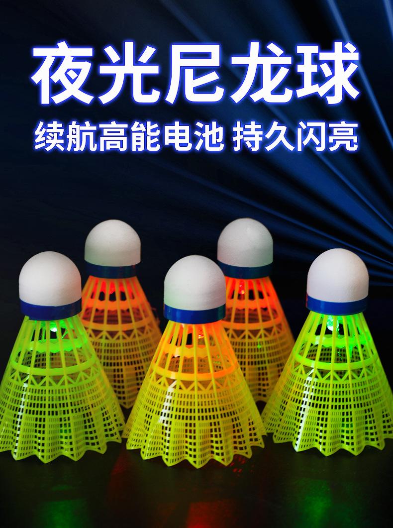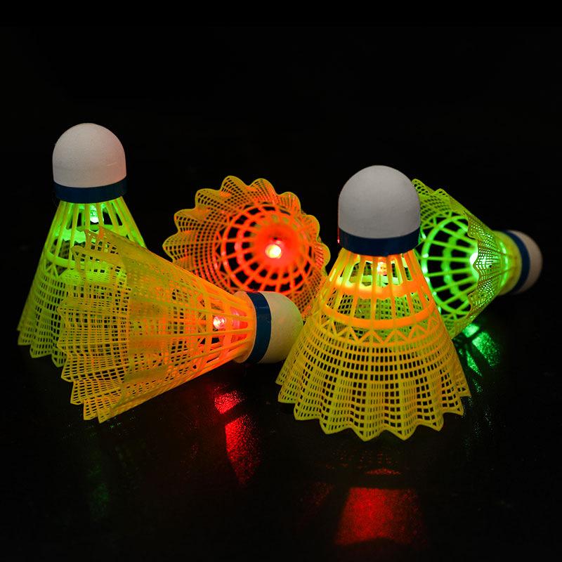 Pelota de bádminton luminosa para exteriores con LED de noche luminosa, pelota de nailon, 4 pelotas de nailon de plástico resistentes, venta al por mayor