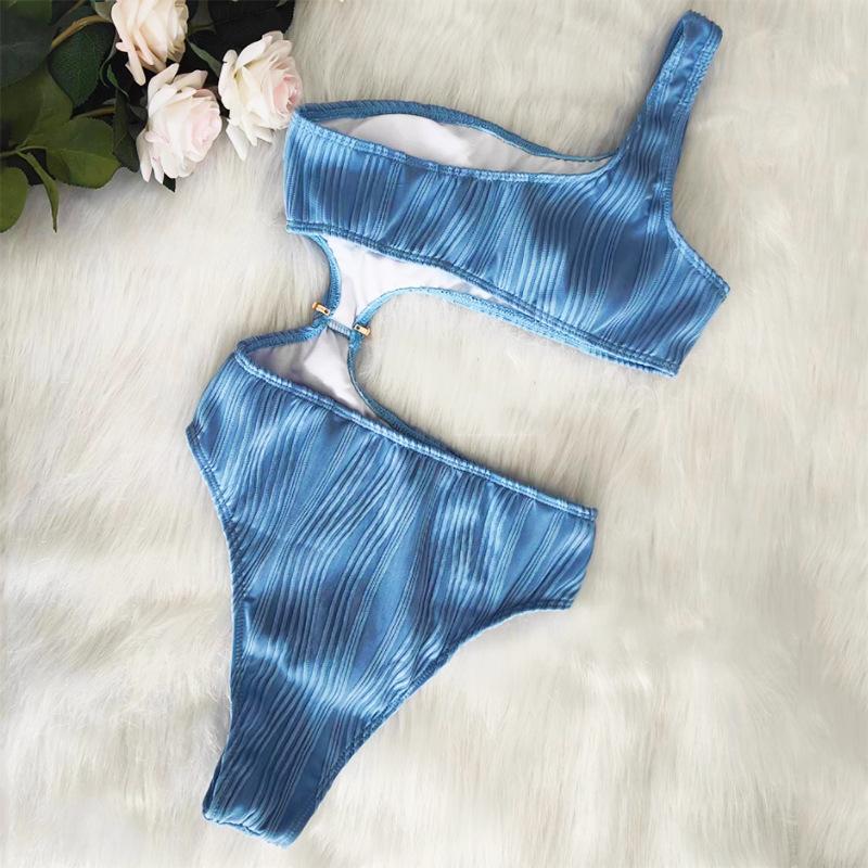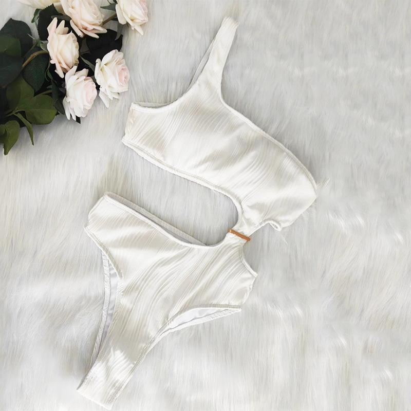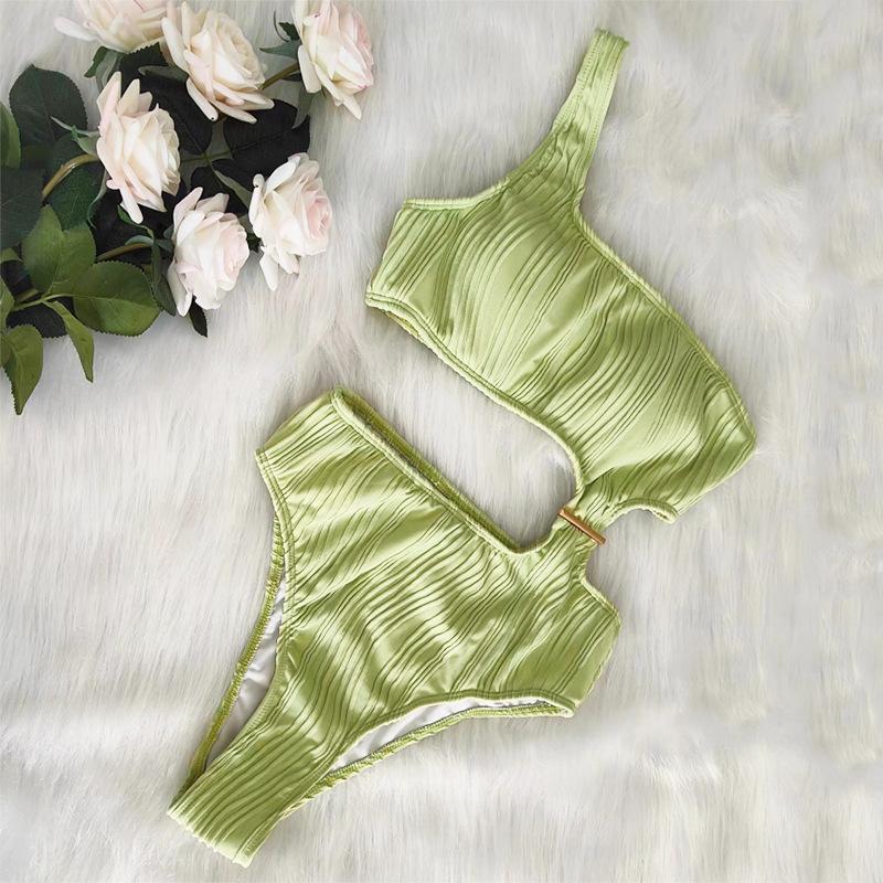 Compra Traje de Baño Entero Monohombro de Color Sólido Transfronterizo Europeo y Americano Nuevo 2025 Bikini Sexy para Mujer en Stock al por mayor en Joom.pro