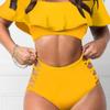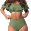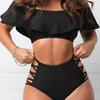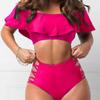 Traje de Baño Dividido de Talla Grande Europeo y Americano para Mujer con Volante de un Hombro Sexy Ajustado Color Puro Traje de Baño para Cubrir la Carne Tipo Dividido