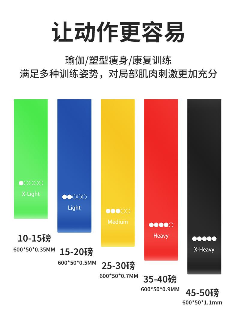 Anillo de tensión TPE, juego de cinco piezas, bolsa de tela, tamaño del embalaje: 18 x 13, tamaño de la caja: 35 x 35 x 25, cantidad del embalaje: 100 juegos, peso: 12 kg